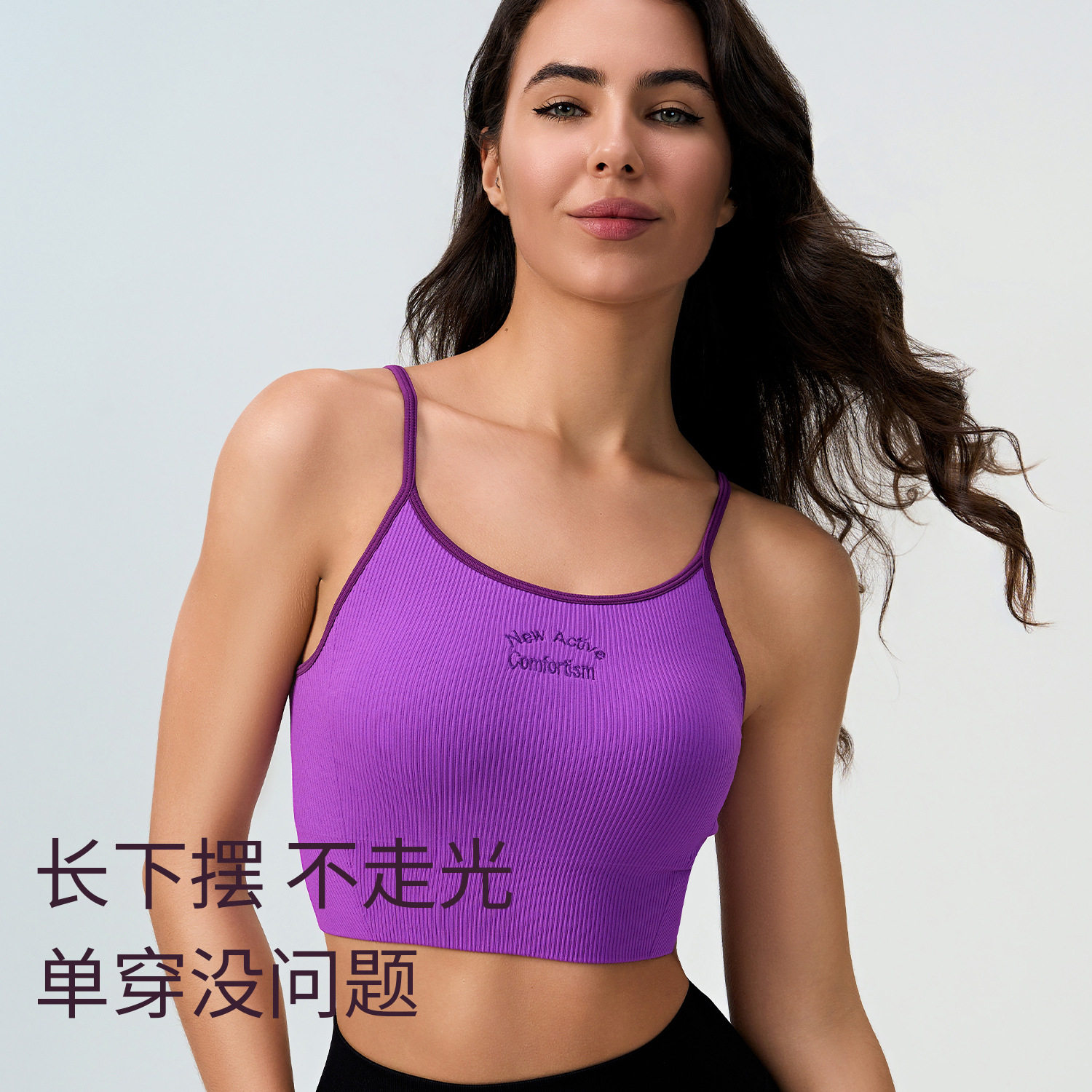 美式复古字母刺绣运动内衣固定胸垫瑜伽美背吊带健身文胸训练背心