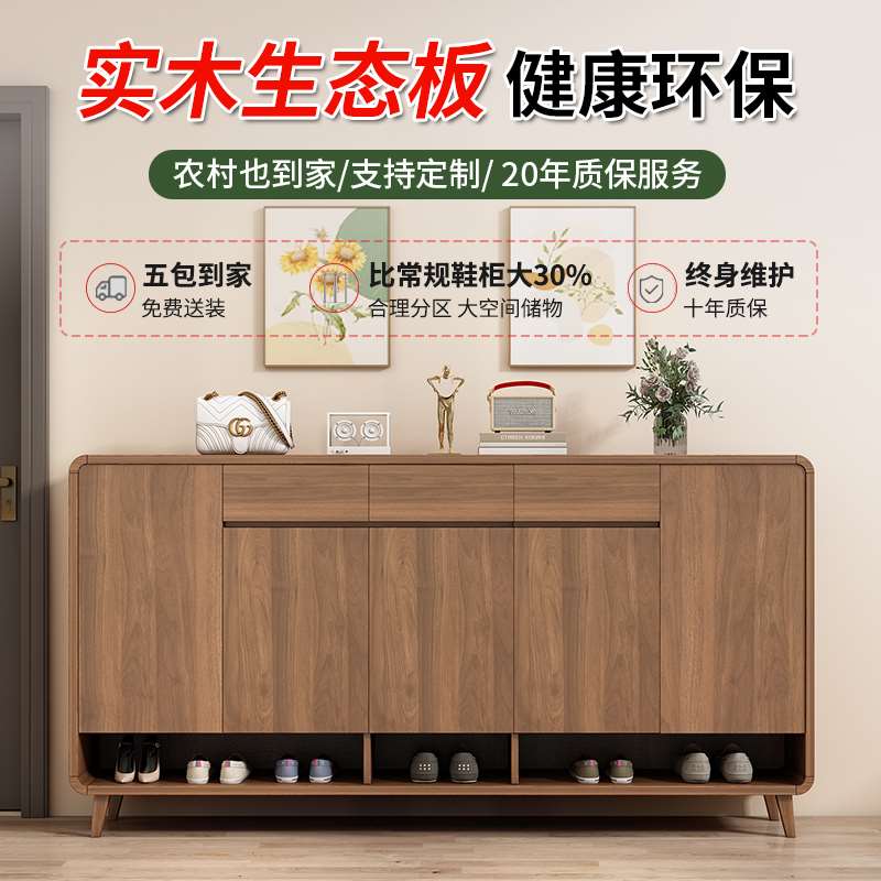全实木鞋柜家用门口一体入户大容量储物柜新款收纳柜子室内玄关柜