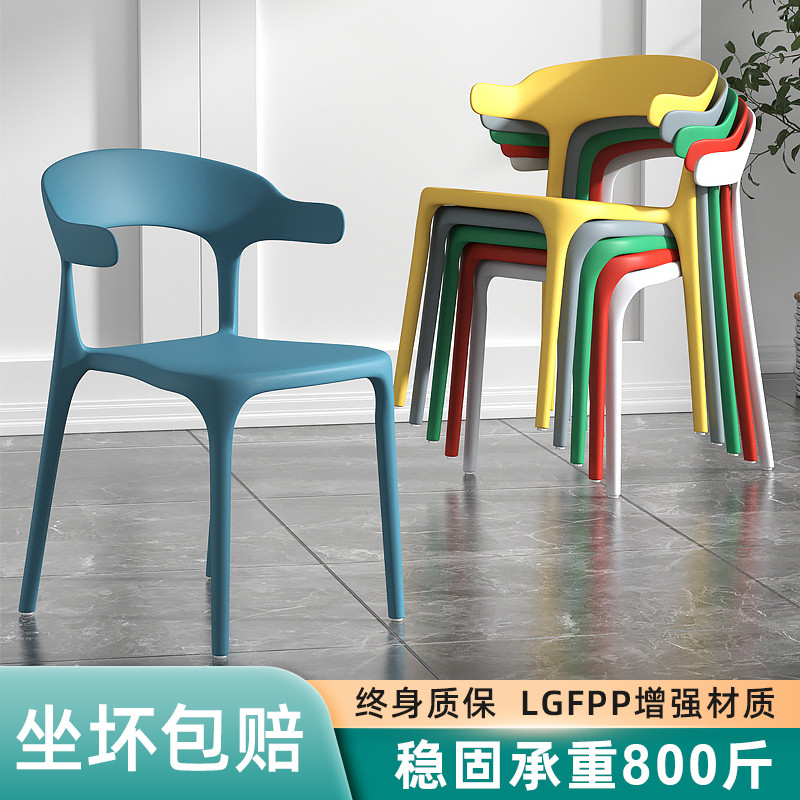 牛角椅子靠背餐椅塑料家用客厅彩色简约麻将椅餐厅等位椅会议凳子