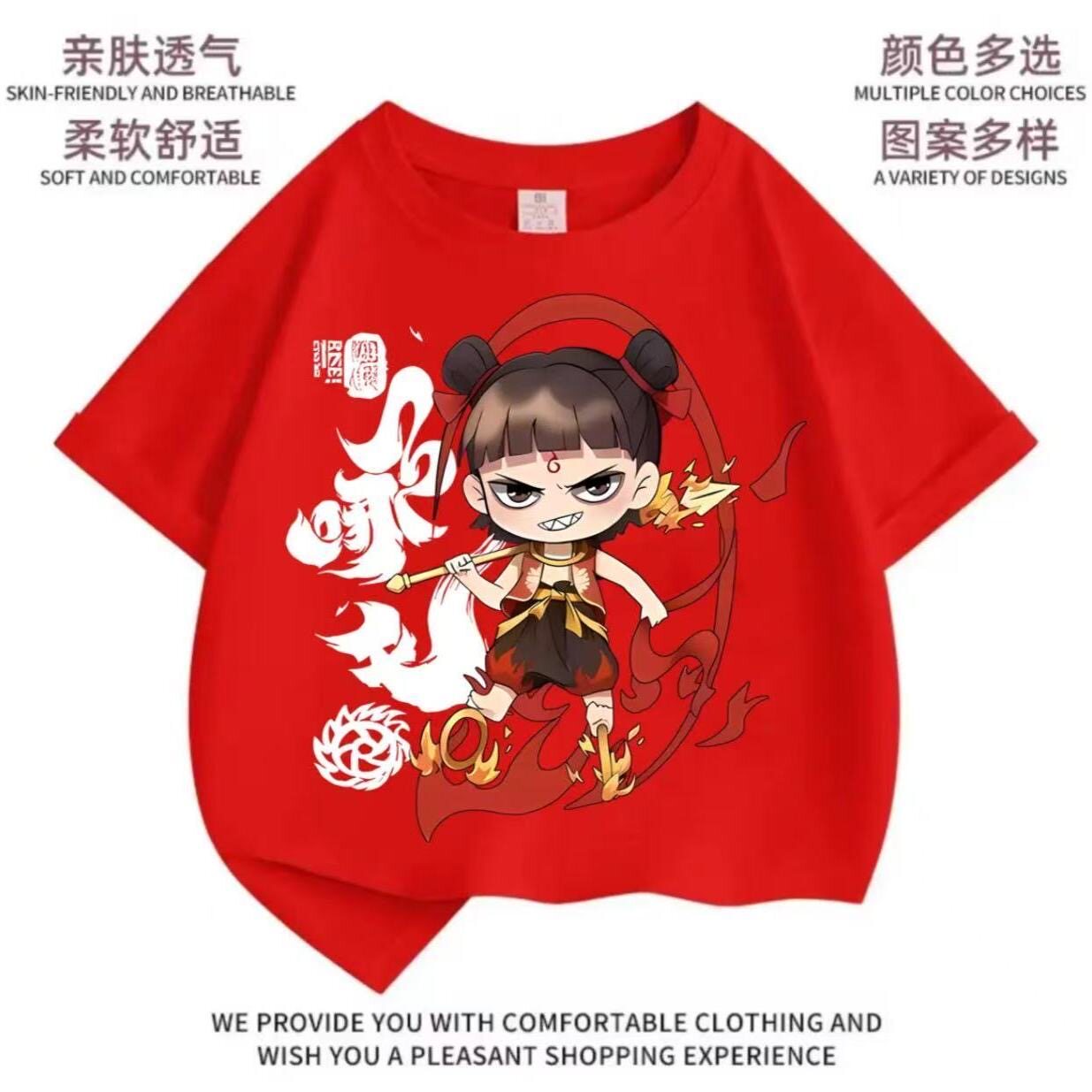 【亮灯款】哪吒之魔童闹海T恤夏季动漫卡通哪吒衣服儿童半袖敖丙