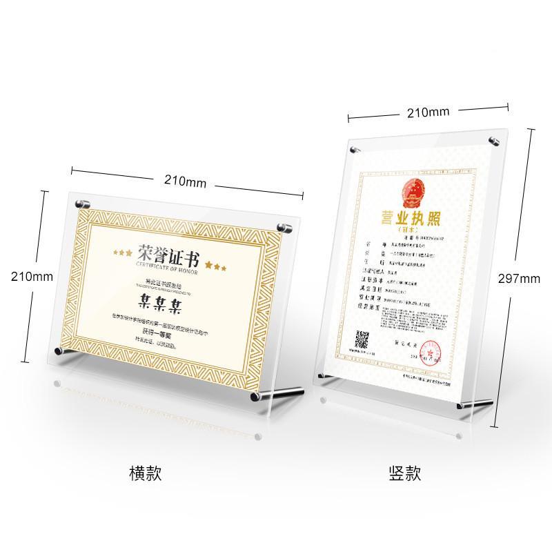 亚明克力1104378相寸框摆台6a4荣誉证书框透水晶7寸a3裱框玻璃奖