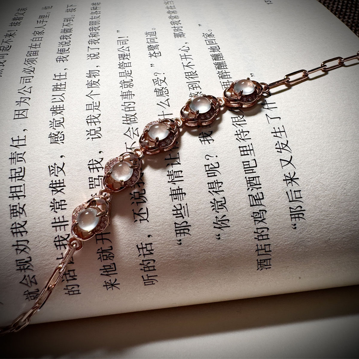 瑜瑾缅甸天然A货翡翠手链玫瑰金饰品
