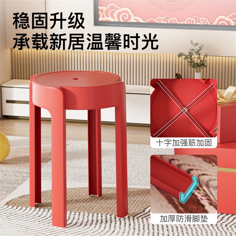 红色塑料凳子家用加厚结实耐用可叠放乔迁新居不占空间的风车板凳