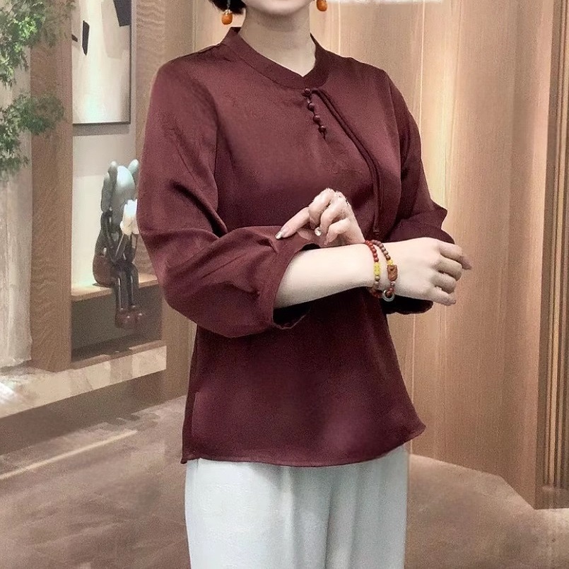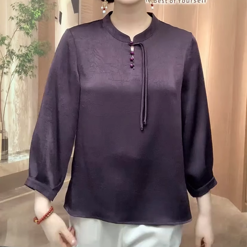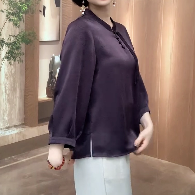 休闲百搭净版四扣流苏醋酸缎小衫女新款宽松遮肉时尚中老年女装