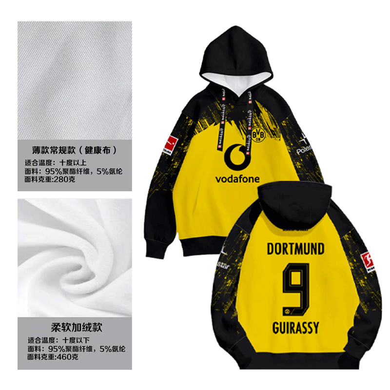 25-26赛季多特蒙德队服足球衣服连帽卫衣套头男女球迷服带帽外套