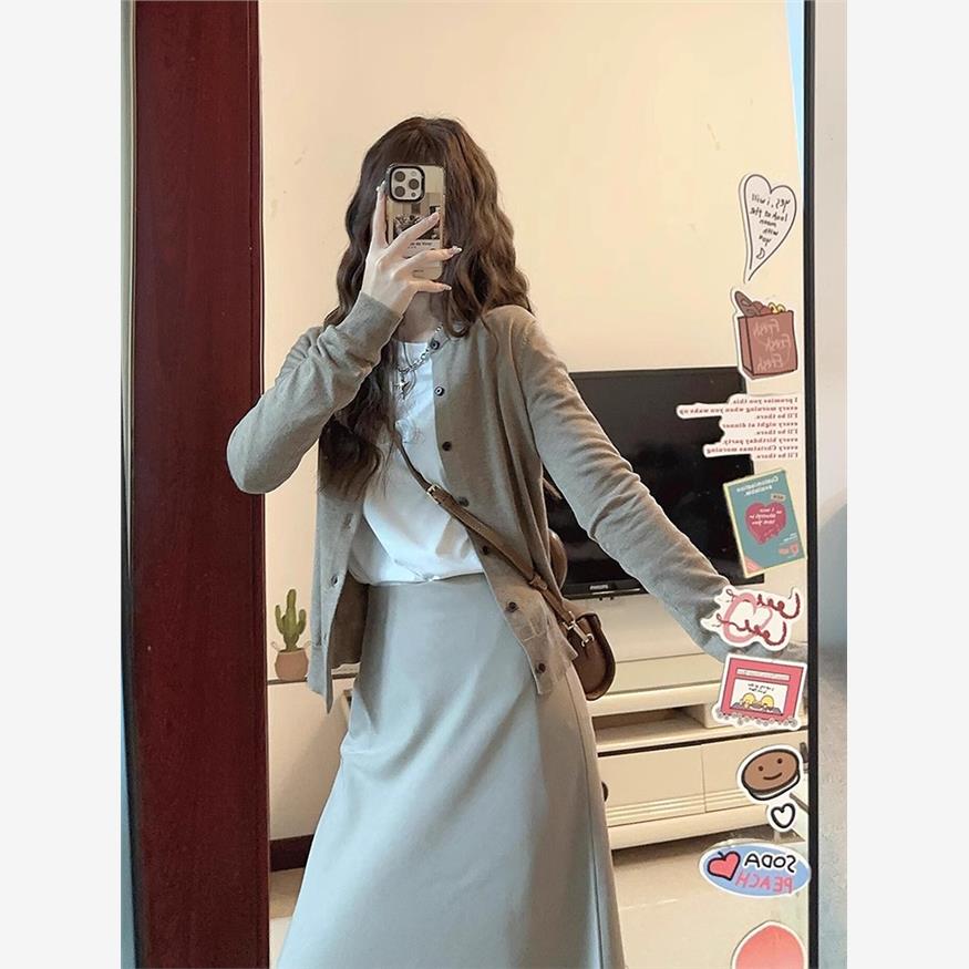 秋季穿搭一整套2025流行韩系时尚洋气巨好看漂亮独特裙子三件套装