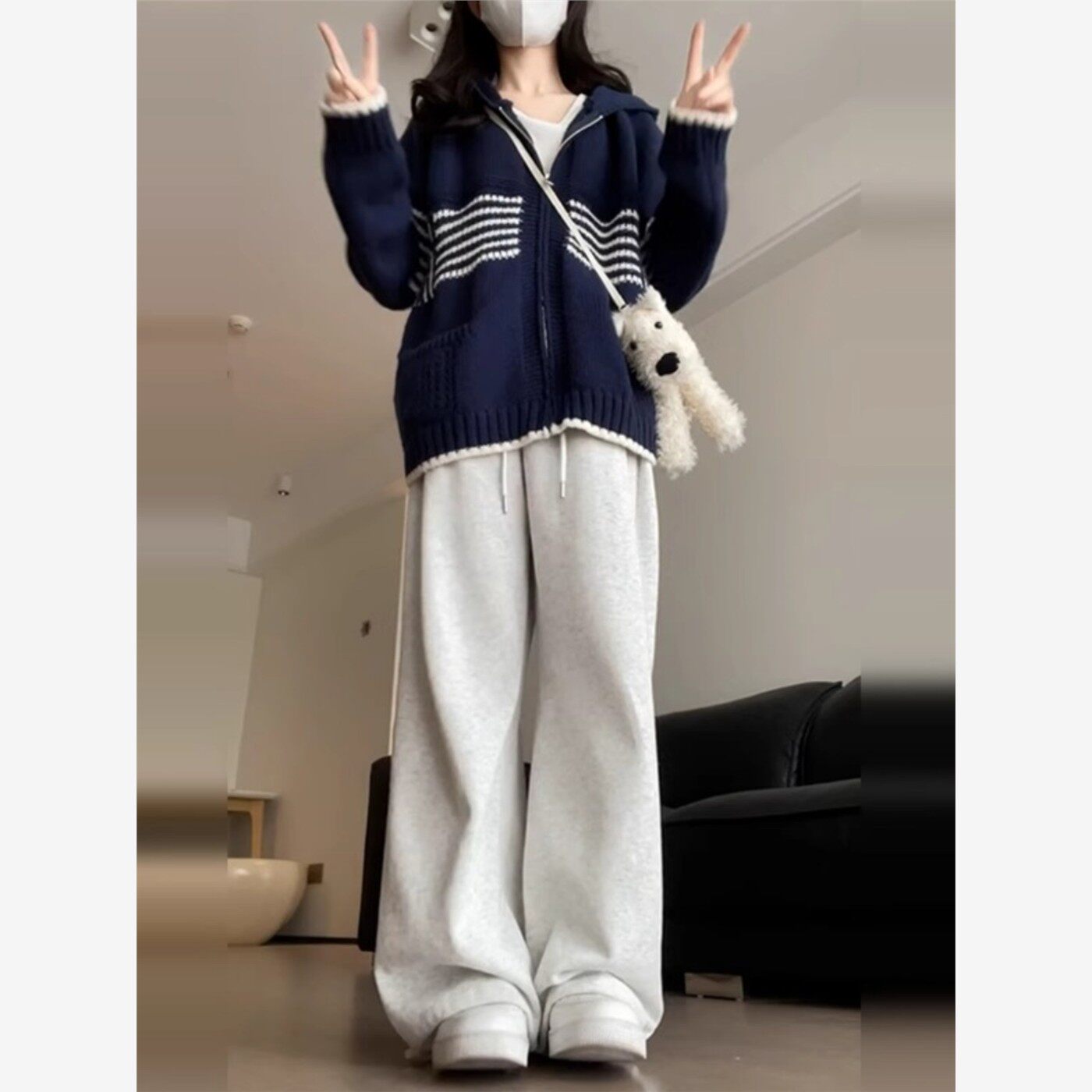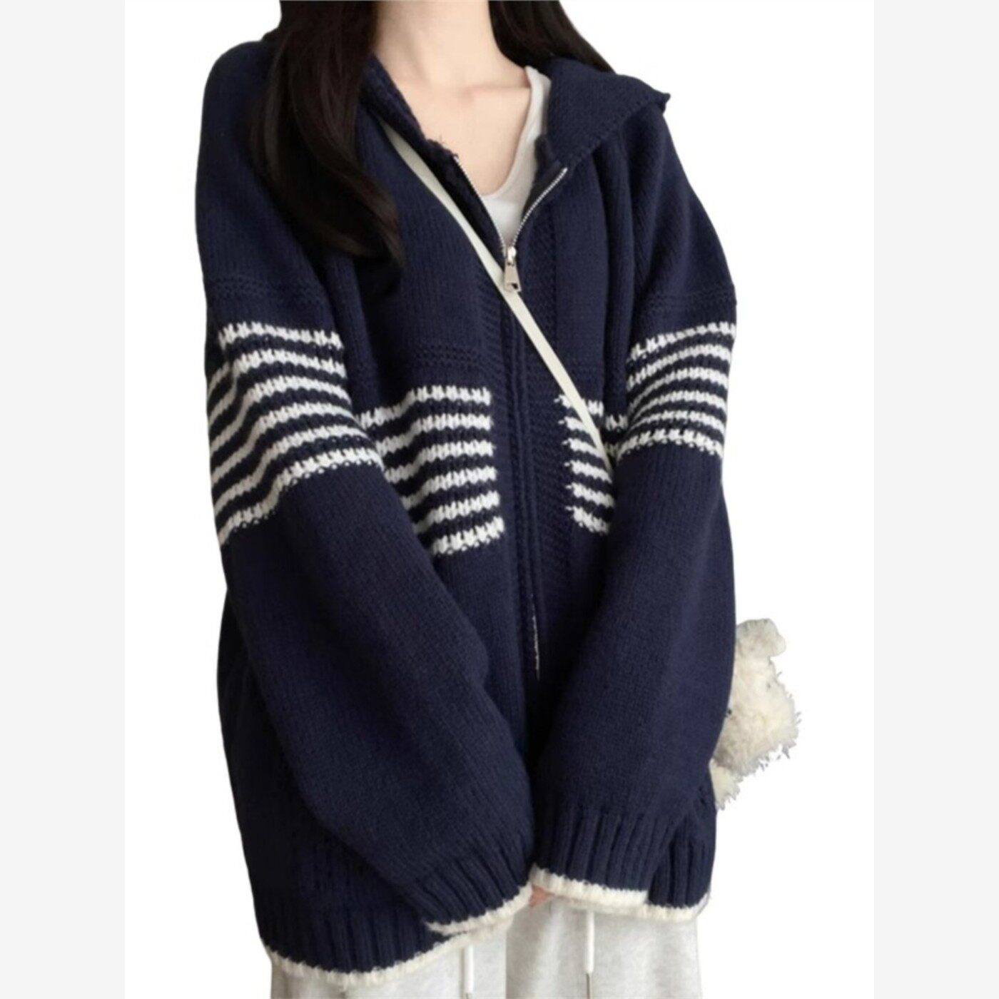 2025新款爆款连帽毛衣外套女秋冬季松弛慵懒风针织开衫高级感上衣