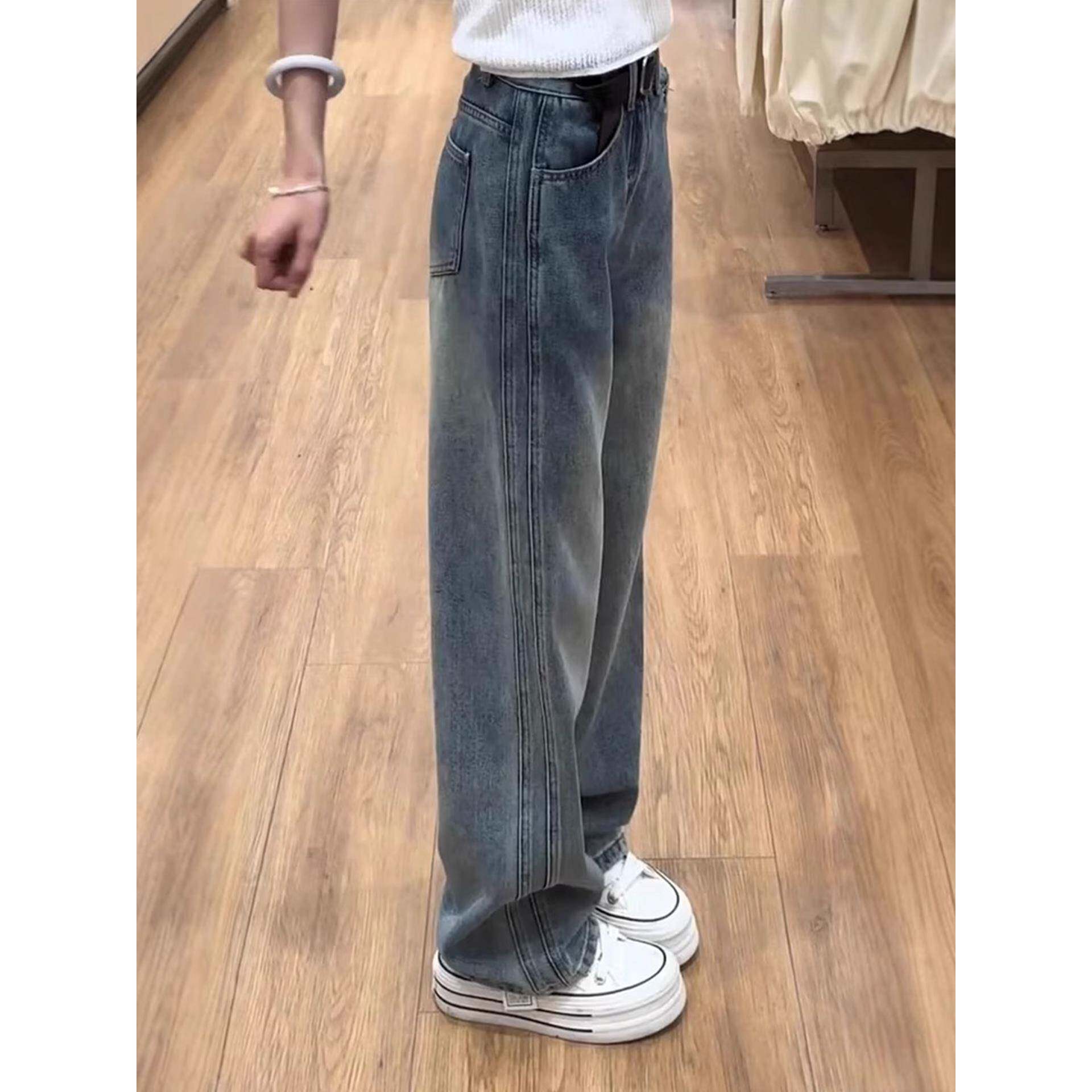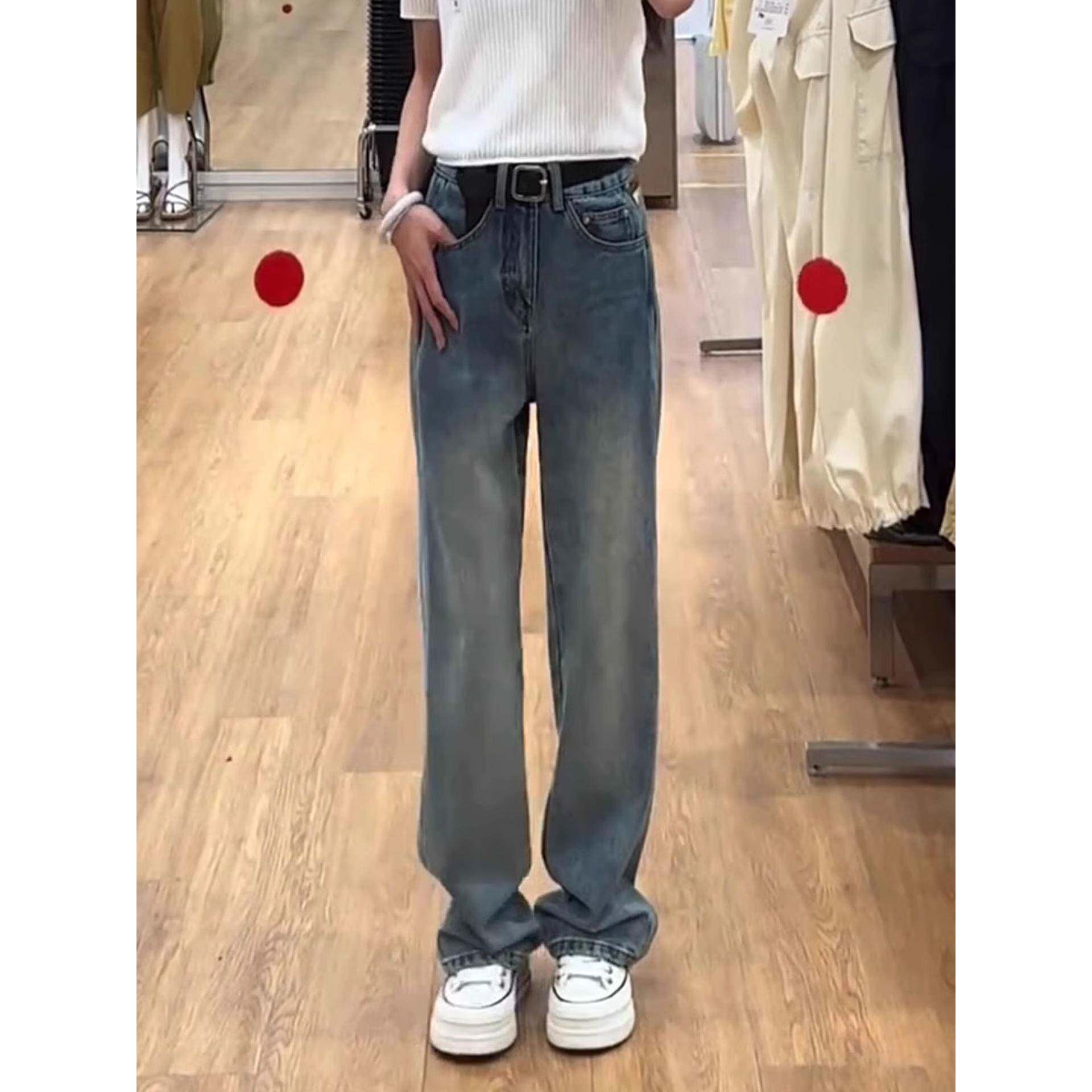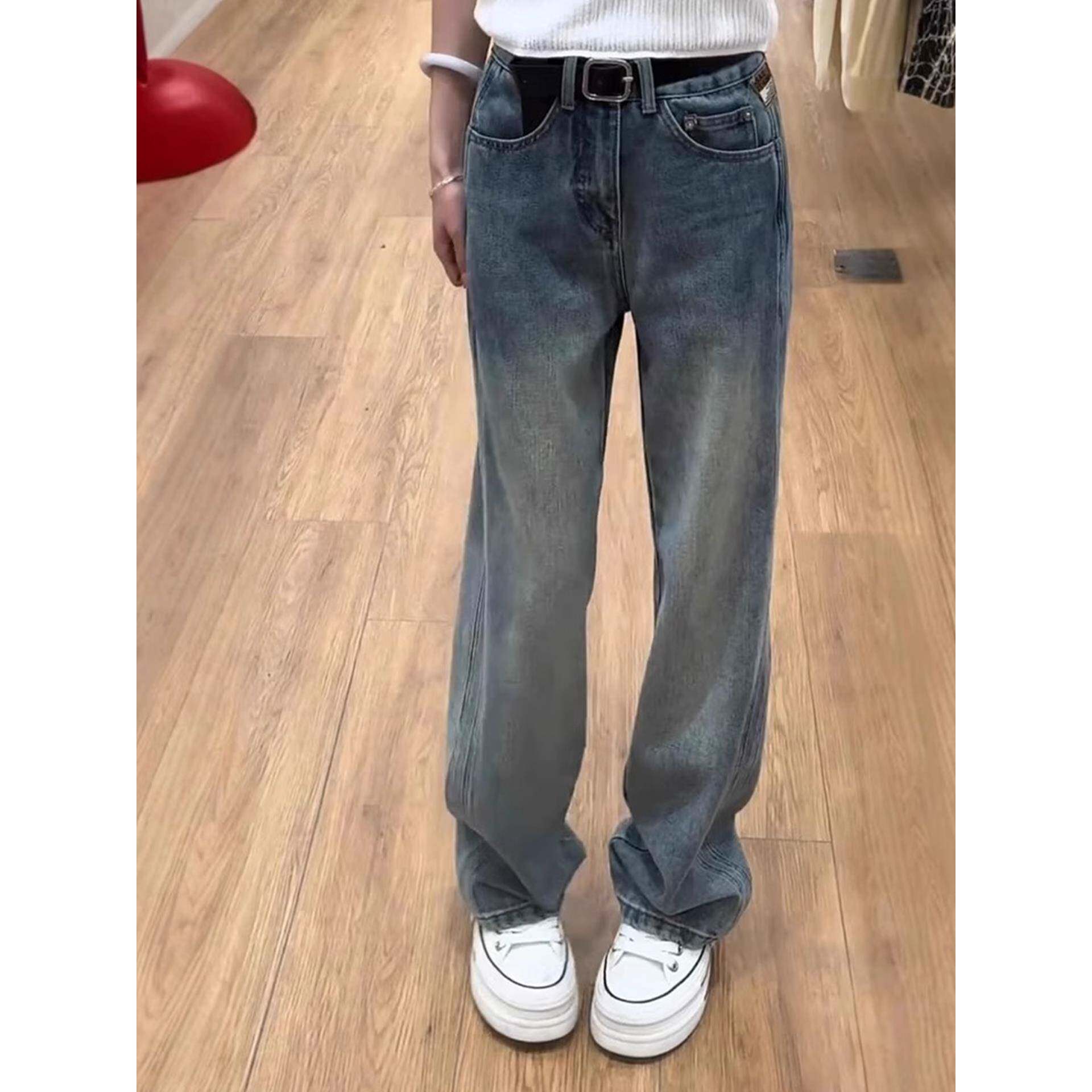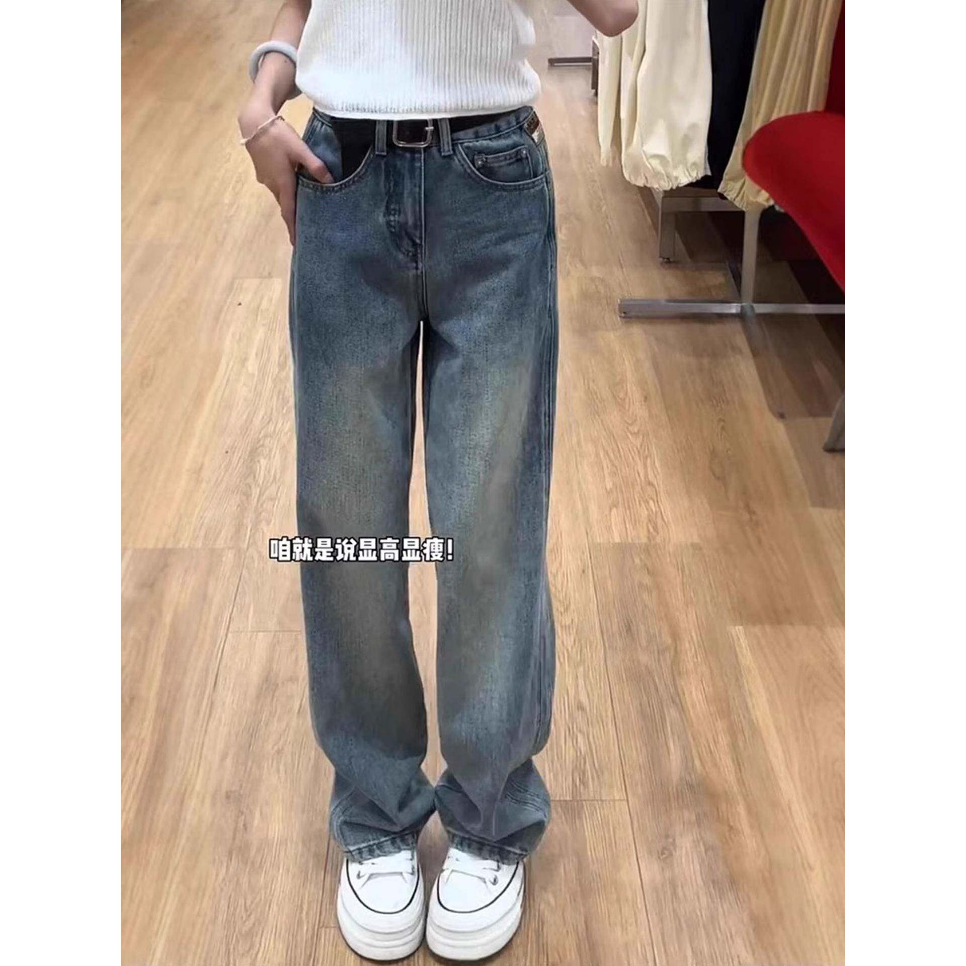 大码窄版直筒牛仔裤女秋季新款小个子梨型遮胯显瘦垂感百搭阔腿裤