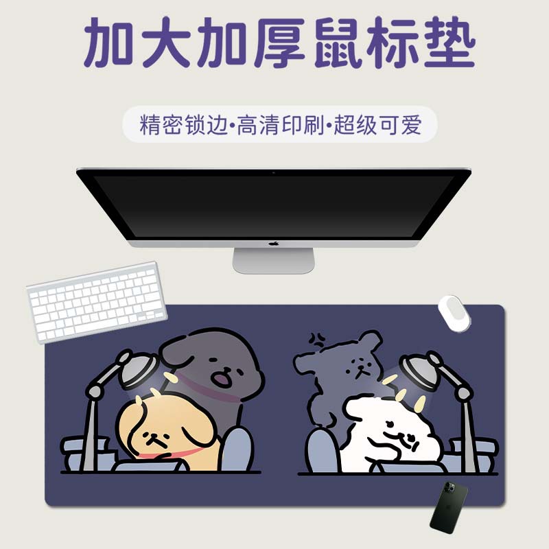 线条小狗鼠标垫超大键盘垫加大加厚锁边批发大号办公桌垫创意