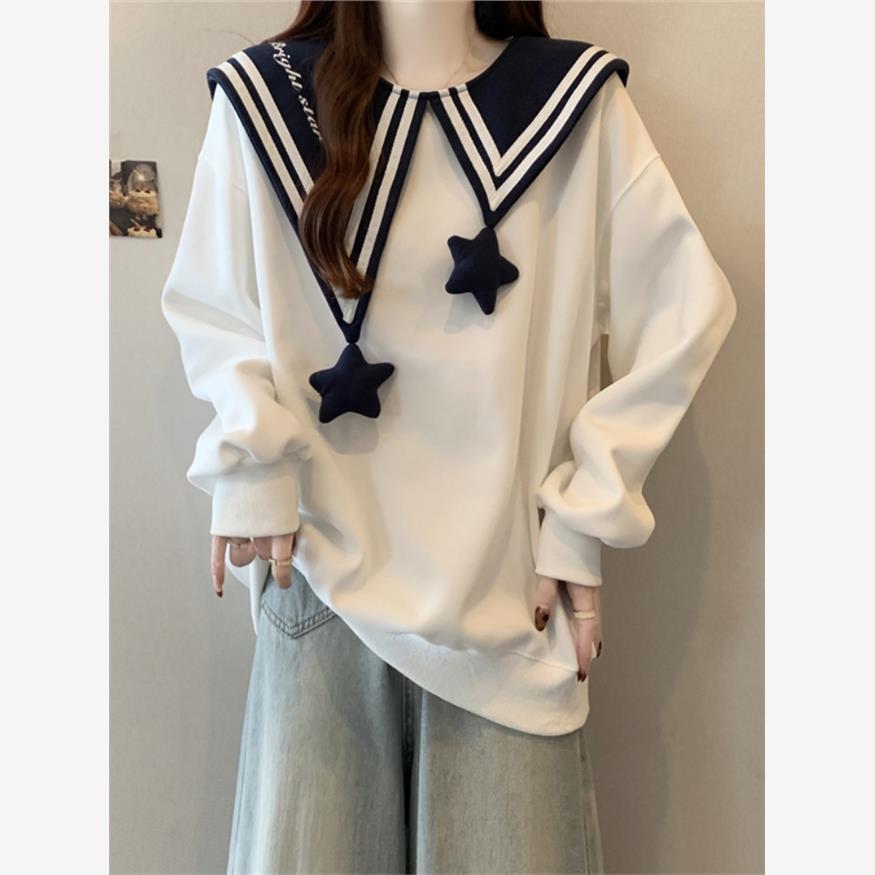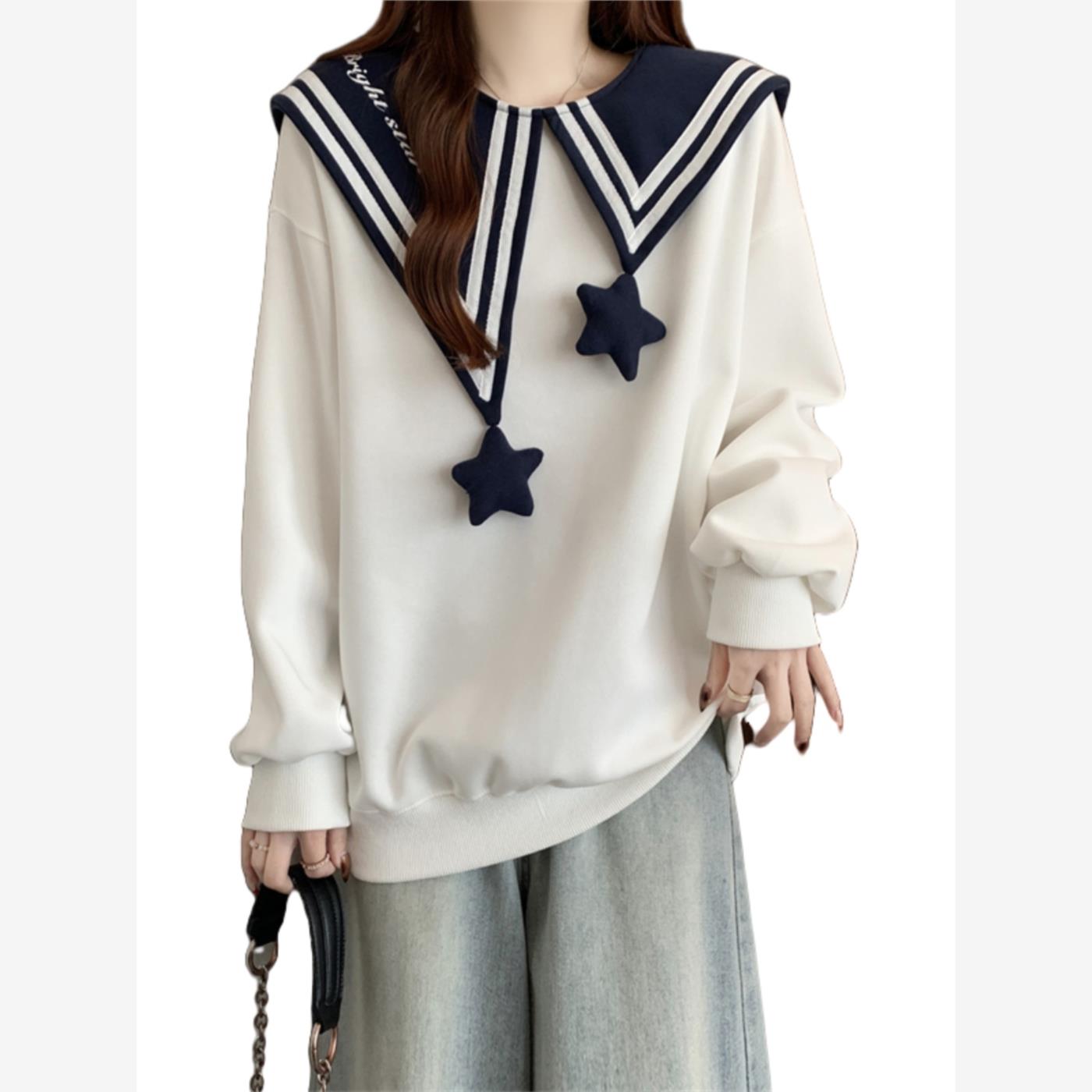 大学风格的女式海军领运动衫2025春秋季大尺寸胖mm韩式宽松慵懒风