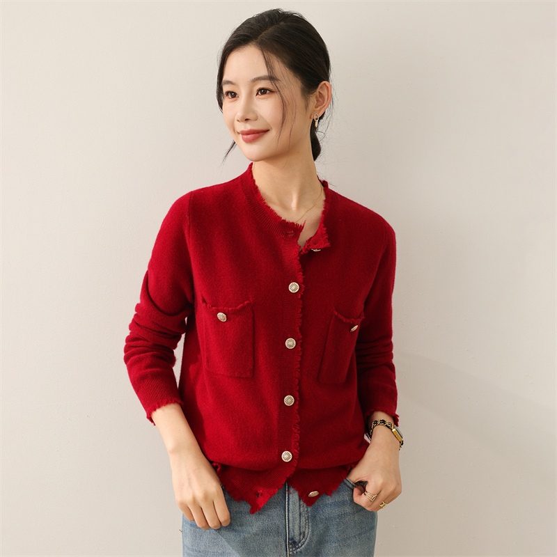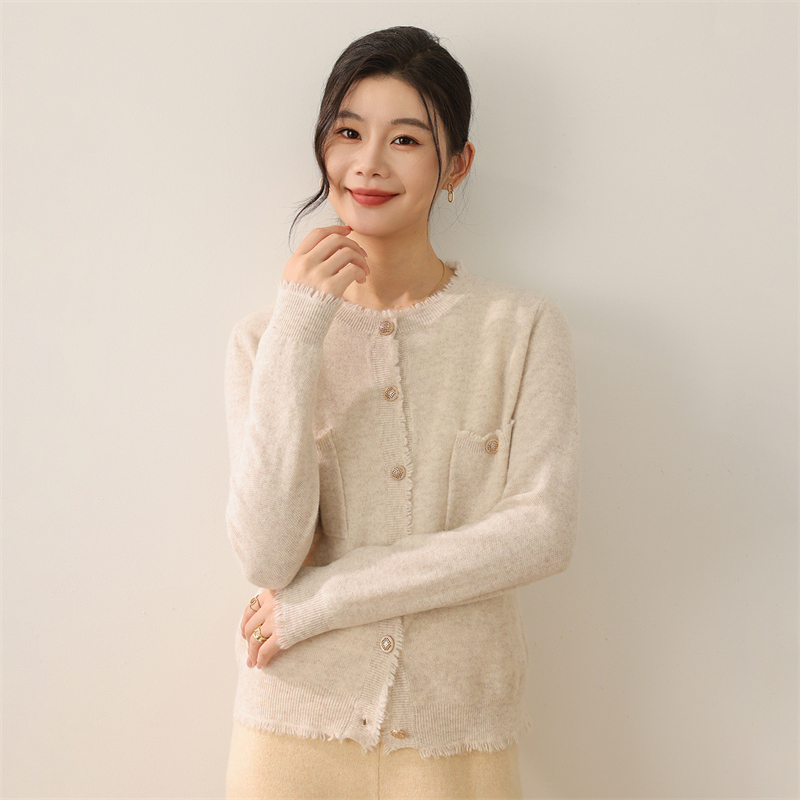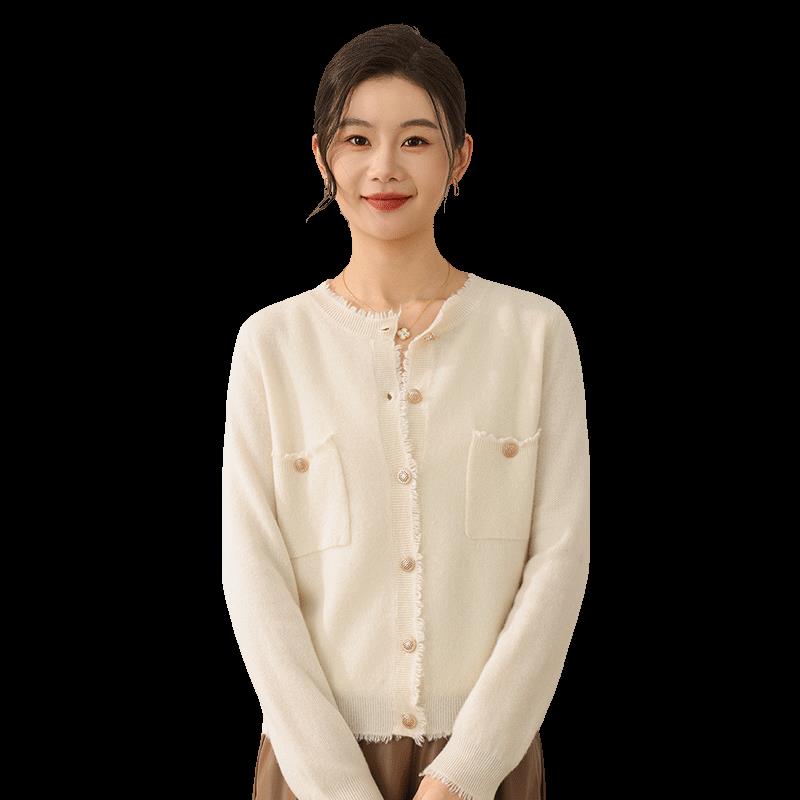 2025年秋季新款百搭小香风流苏包边金属扣开衫