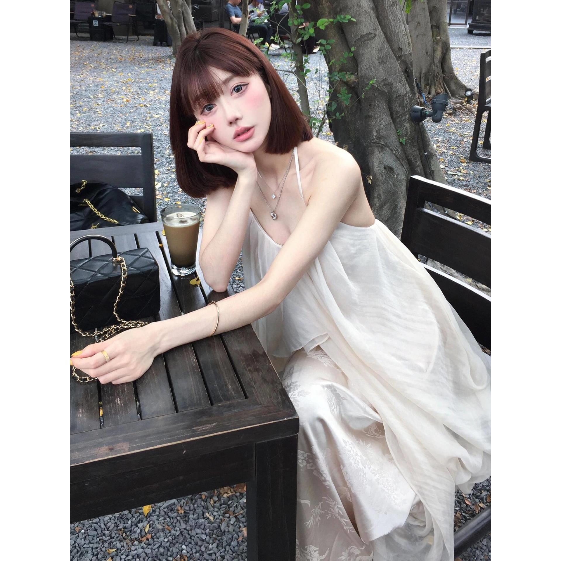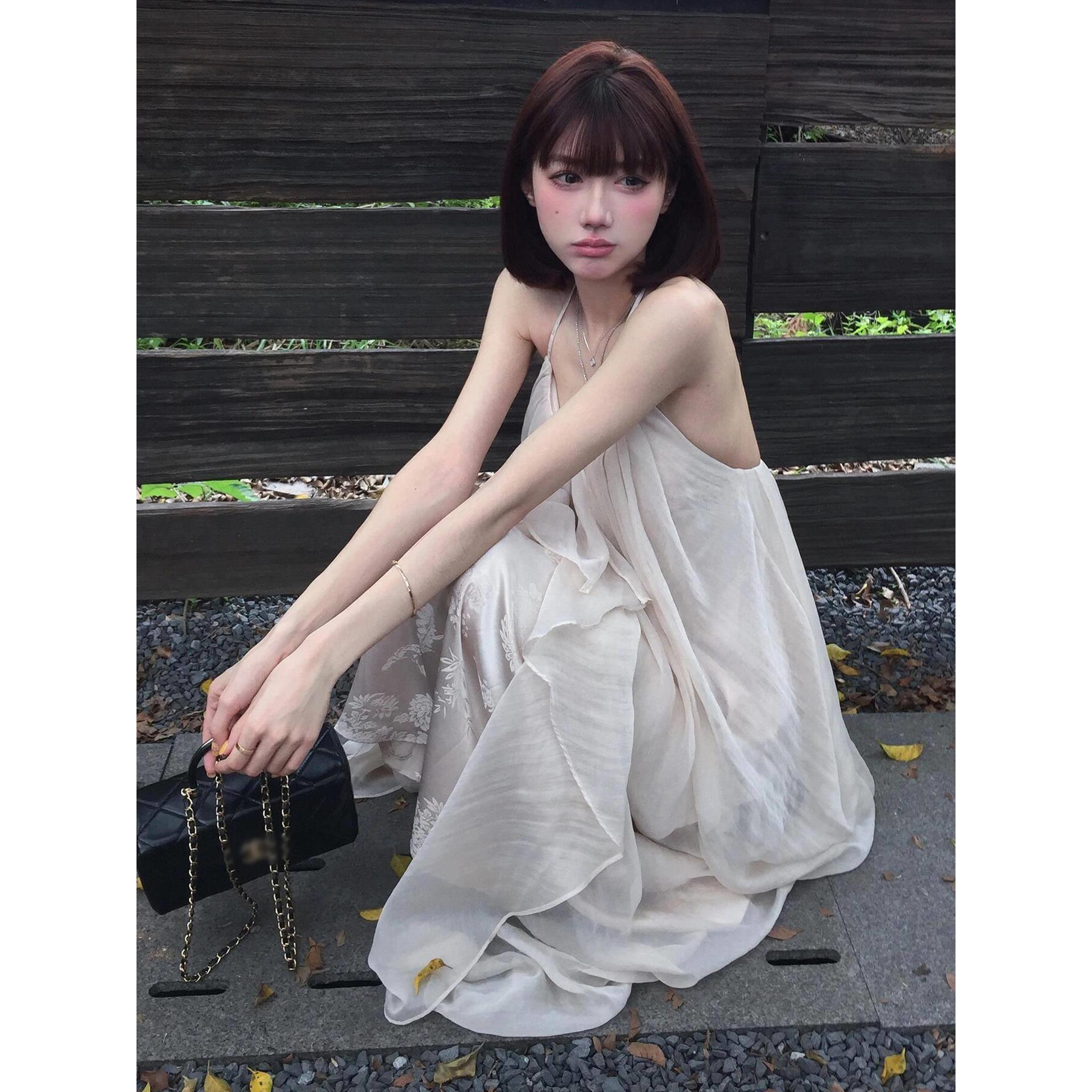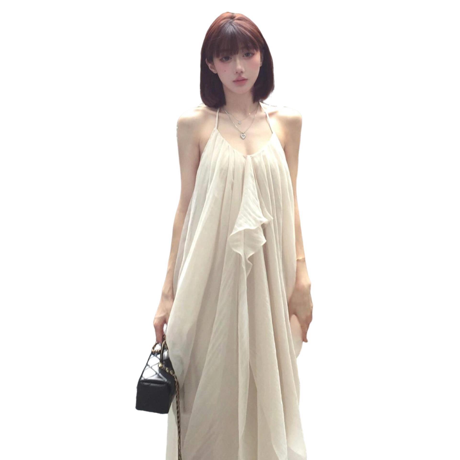 夏日绝美法式挂脖连衣裙2025新款波西米亚海边度假风不规则长裙子