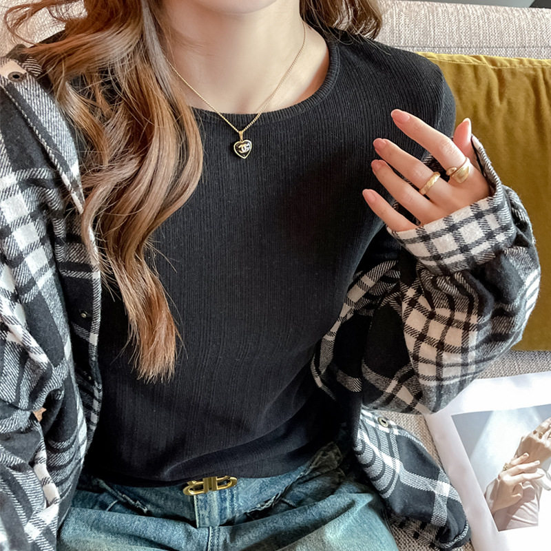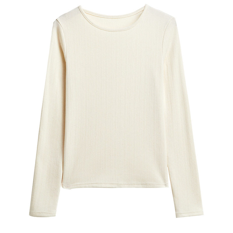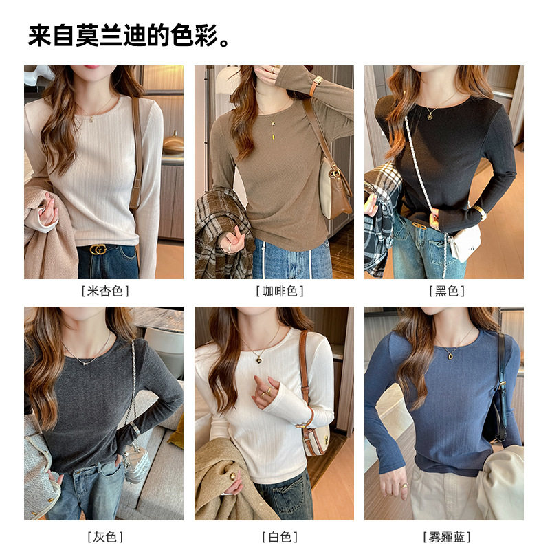 白色正肩长袖上衣女2025秋冬内搭新款圆领高级感可外穿早秋打底衫