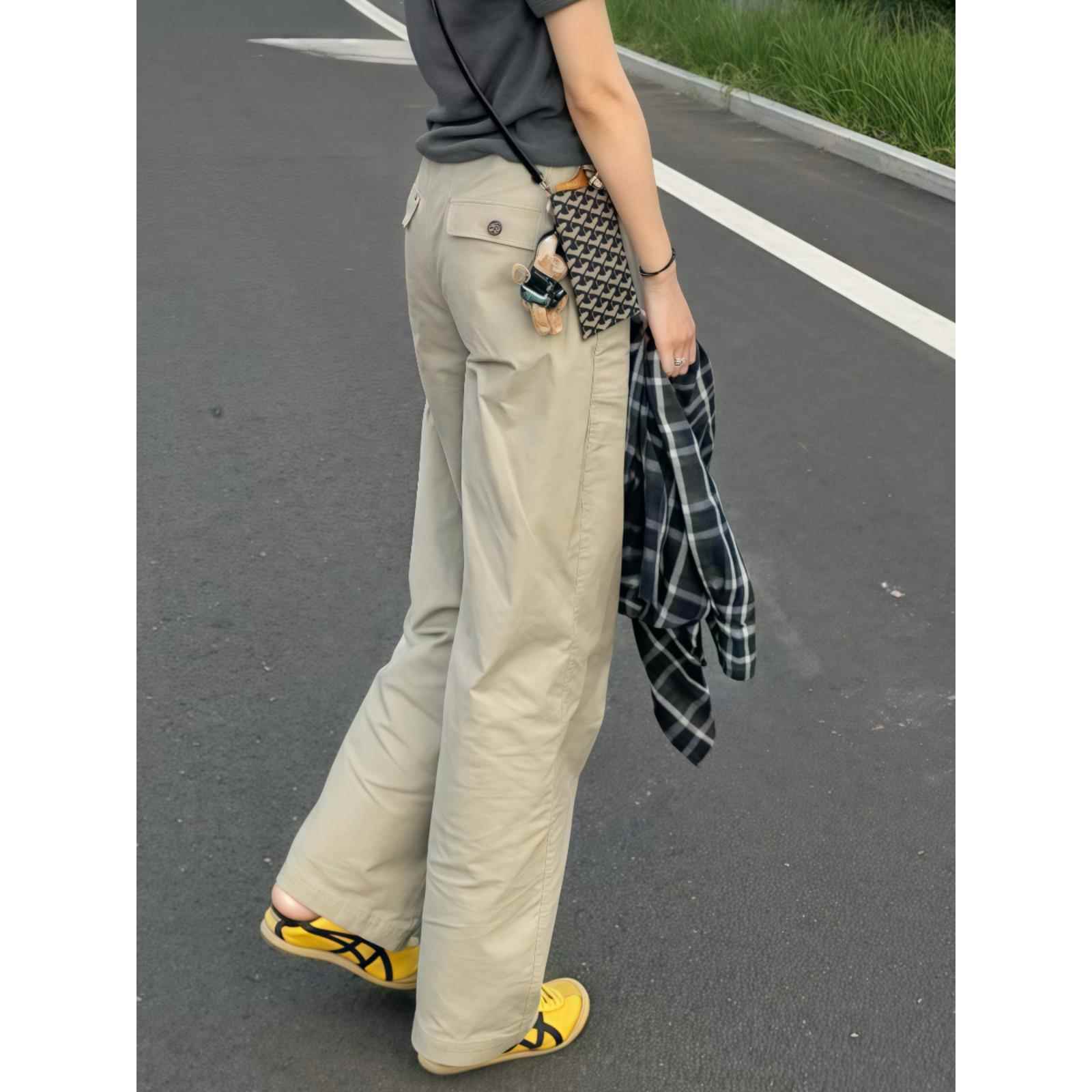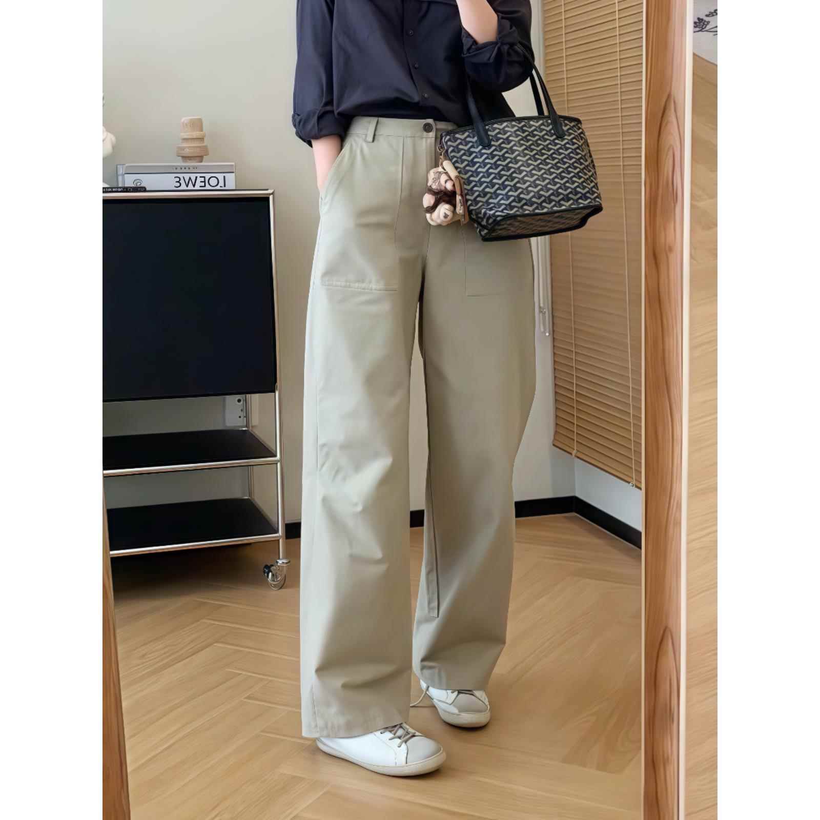 大码女工装阔腿休闲裤女2025年早秋季新款宽松显瘦百搭高腰拖地裤