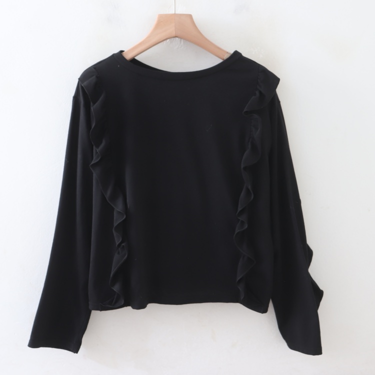 首页> 女装> D01081日单秋季 新款圆领套头宽松荷叶花边设计女通勤休闲长袖T恤