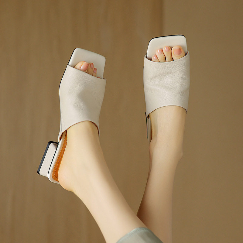 巨软舒适高级感满满一字带漏趾拖鞋2025夏季百搭方头外穿复古凉鞋