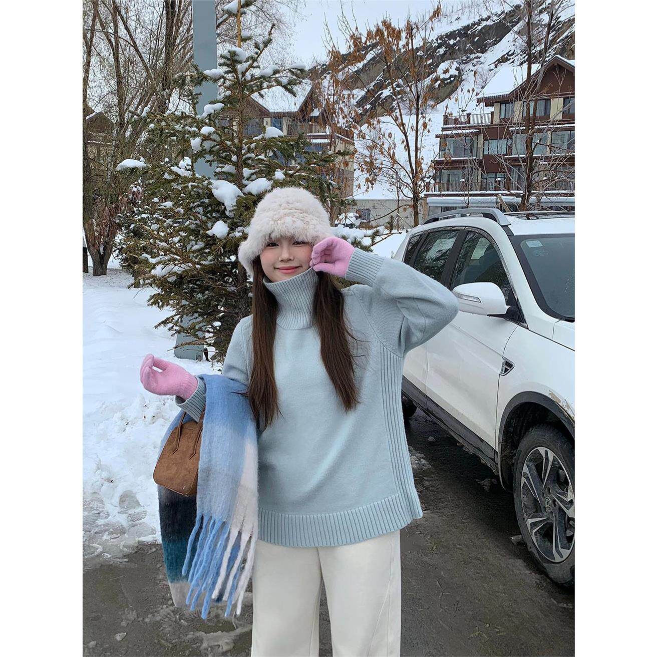 大婉酱微胖定制【头包脸2.0】宽松多色洋气多巴胺高领厚针织毛衣