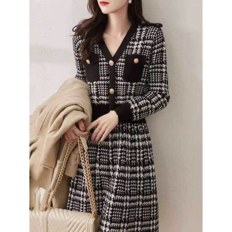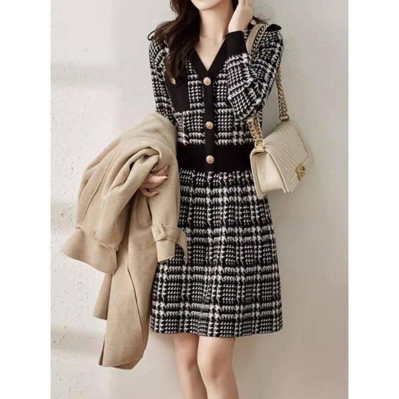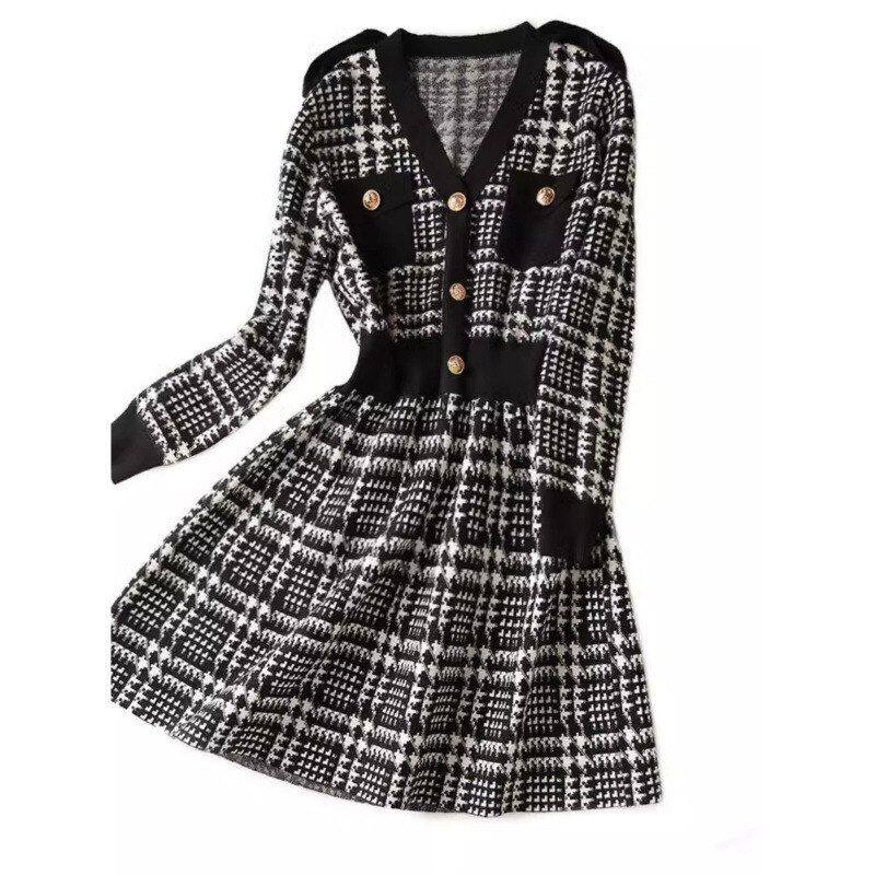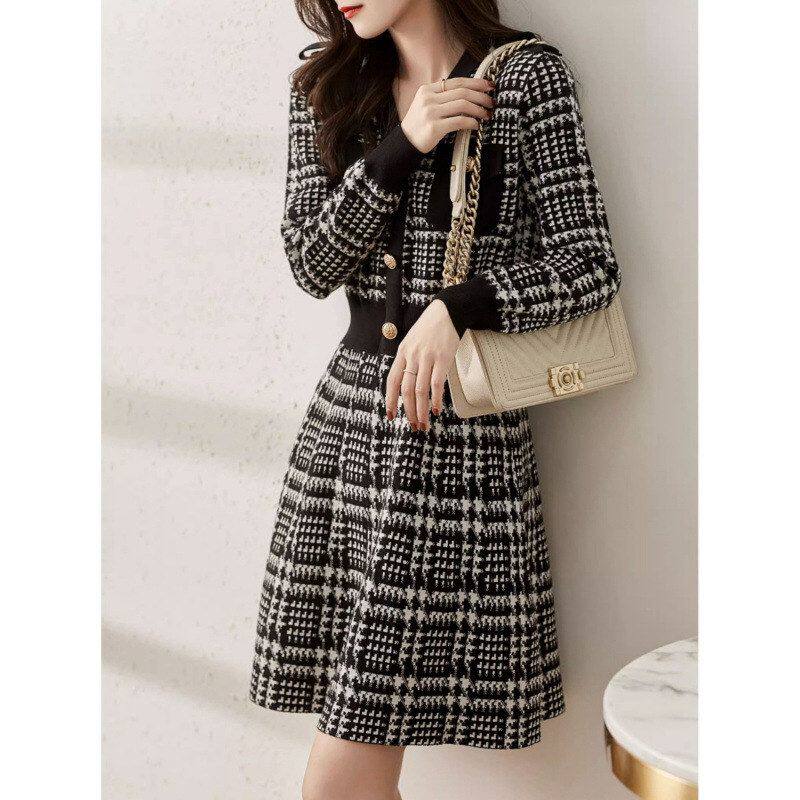 8126欧洲站复古赫本风针织裙秋新款女装法式毛衣裙内搭打底连衣裙