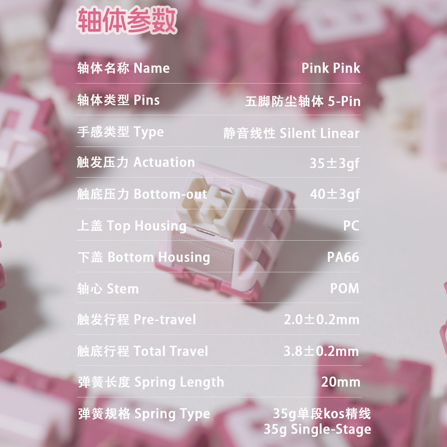 (Ruben鲁本)pink pink轴客制化线性静音轴体