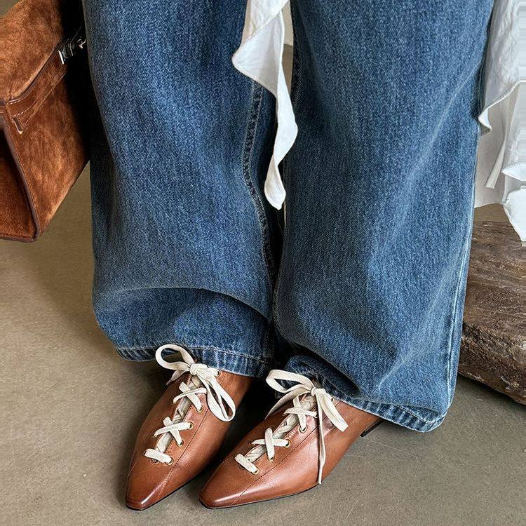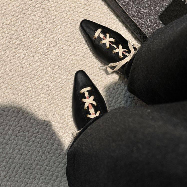 小众款~单鞋女春新潮系带小皮鞋英伦平底德比鞋镂空女巫鞋通勤鞋