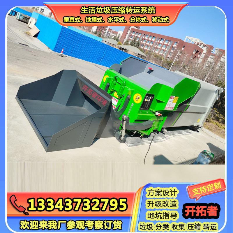寺庙新型垃圾压缩中转站设备 20吨水平式压缩式垃圾转运箱维修