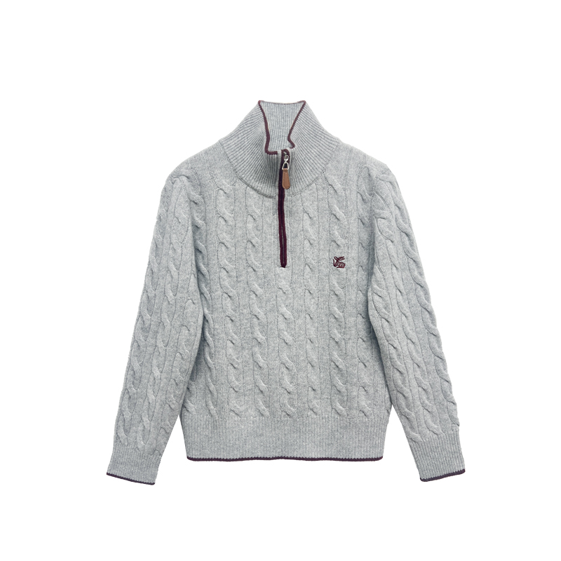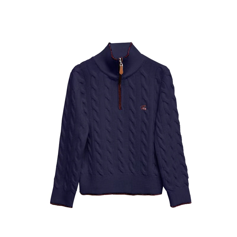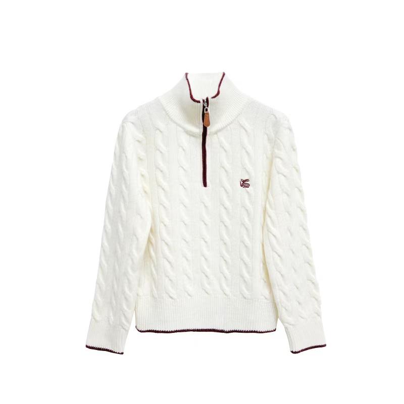 【橙庐】527182兔子刺绣绞花半拉链绵羊毛衫 秋冬女时尚休闲百搭
