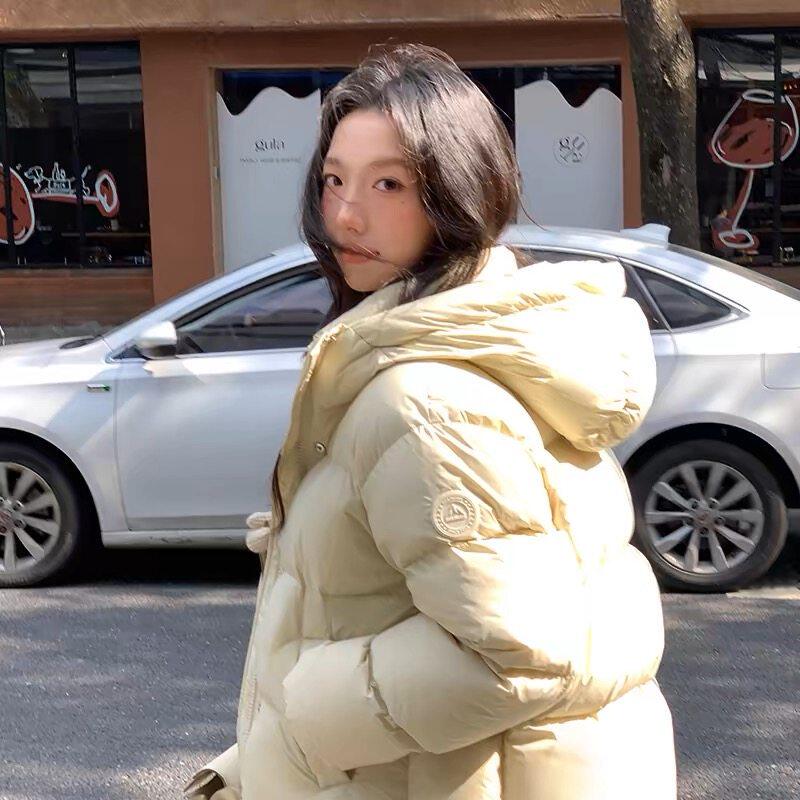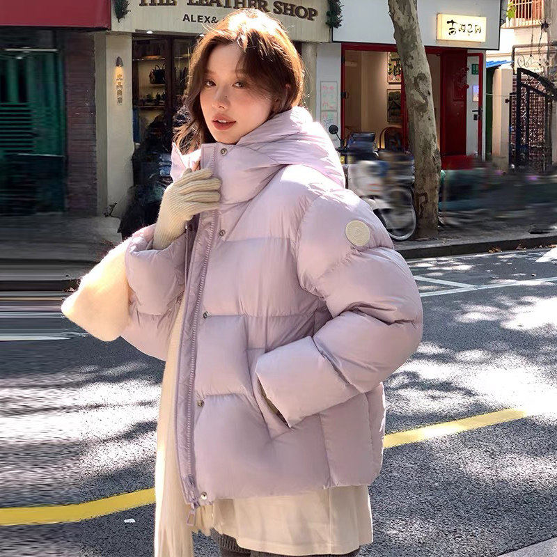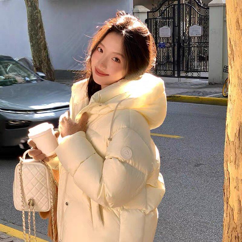 正品短款羽绒服女款冬季2025新款泡芙面包服加厚连帽白鸭绒外套爆