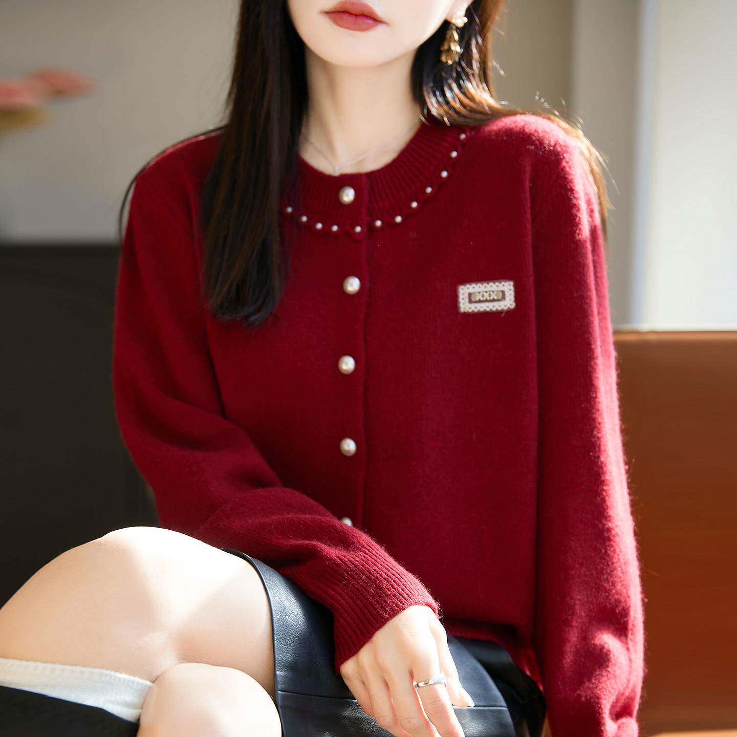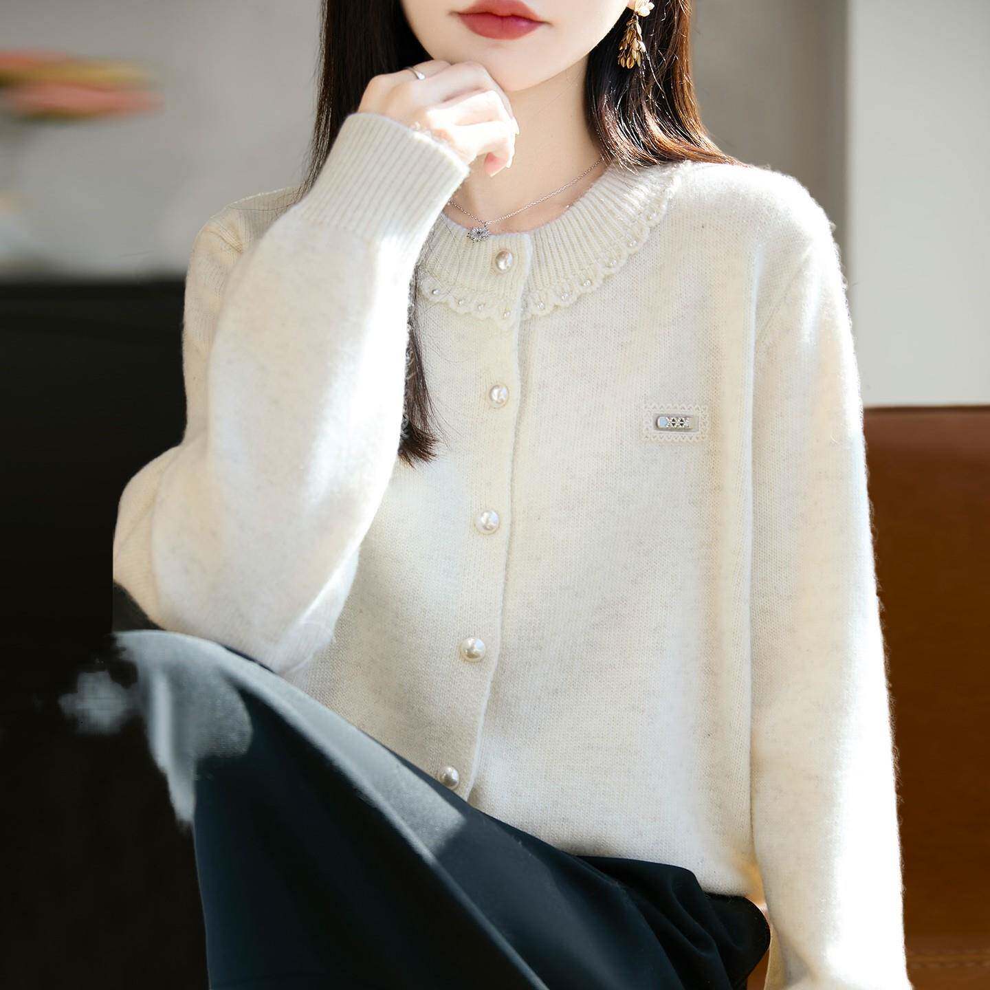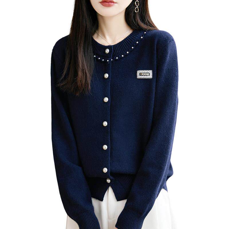 时尚钉珠纽扣针织开衫外套女2025新款洋气大码女装上衣秋冬毛衣