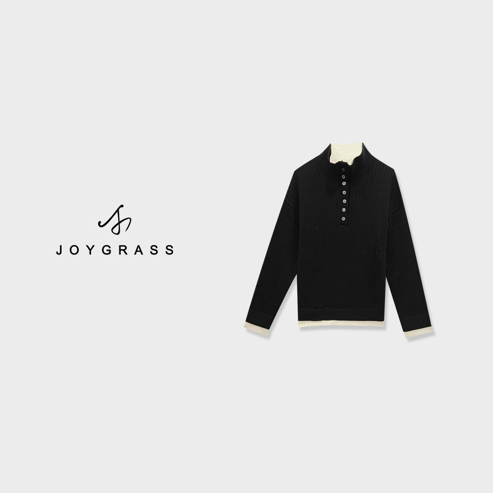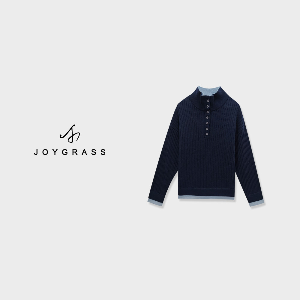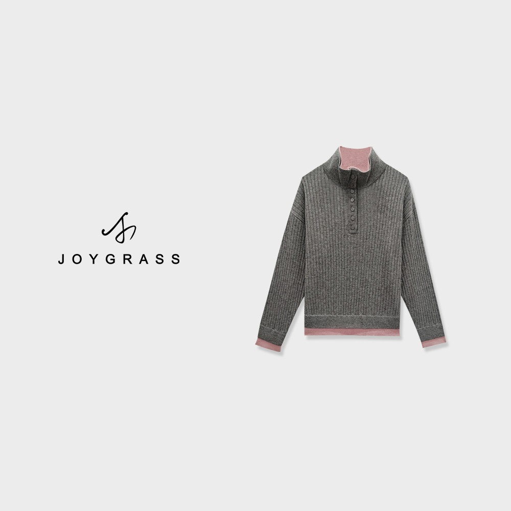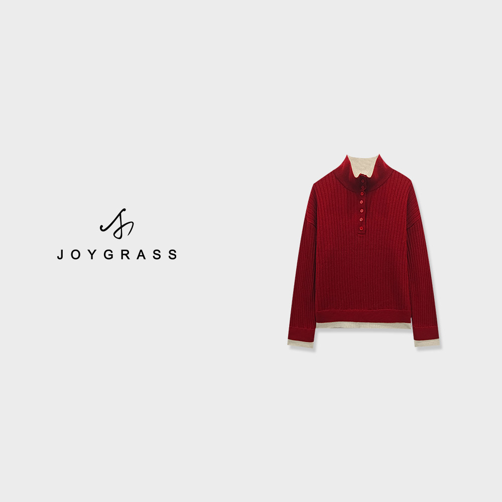 JOYGRASS【赤霭叠纹暖绒】复古高领开衫 Z-08132