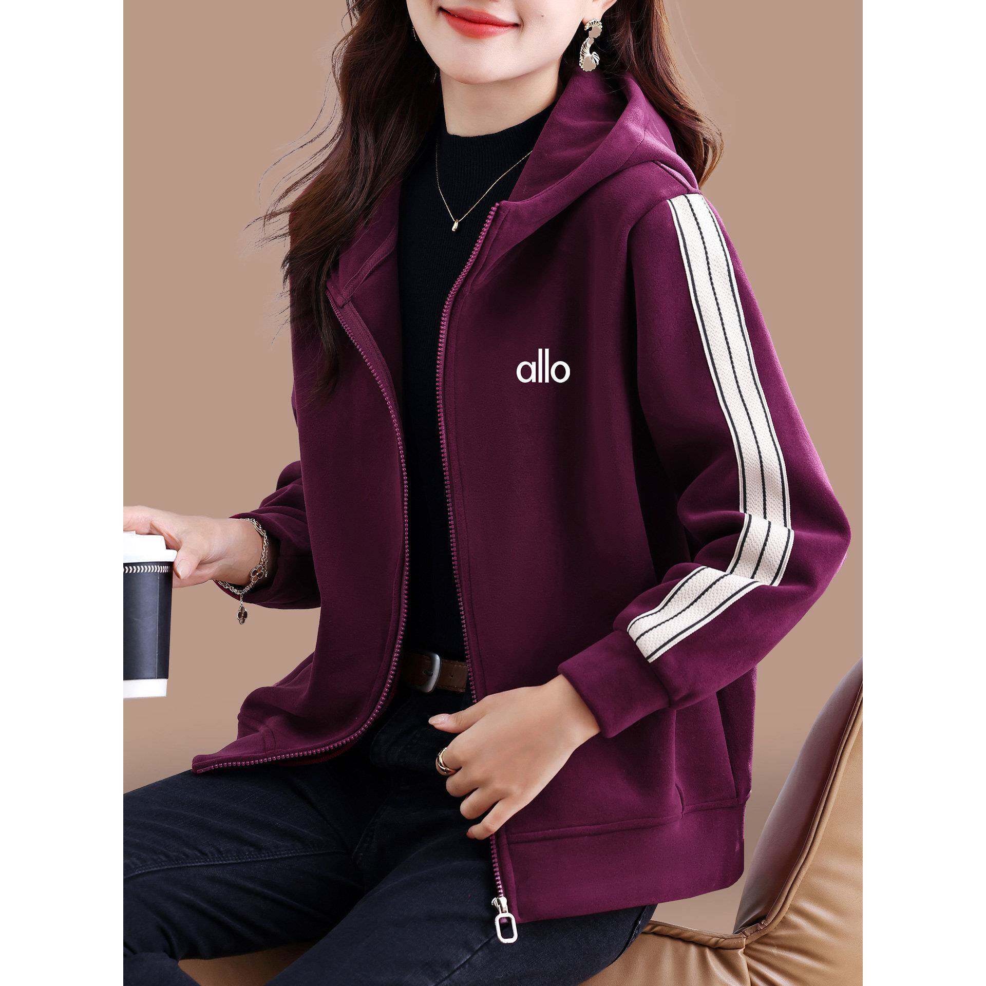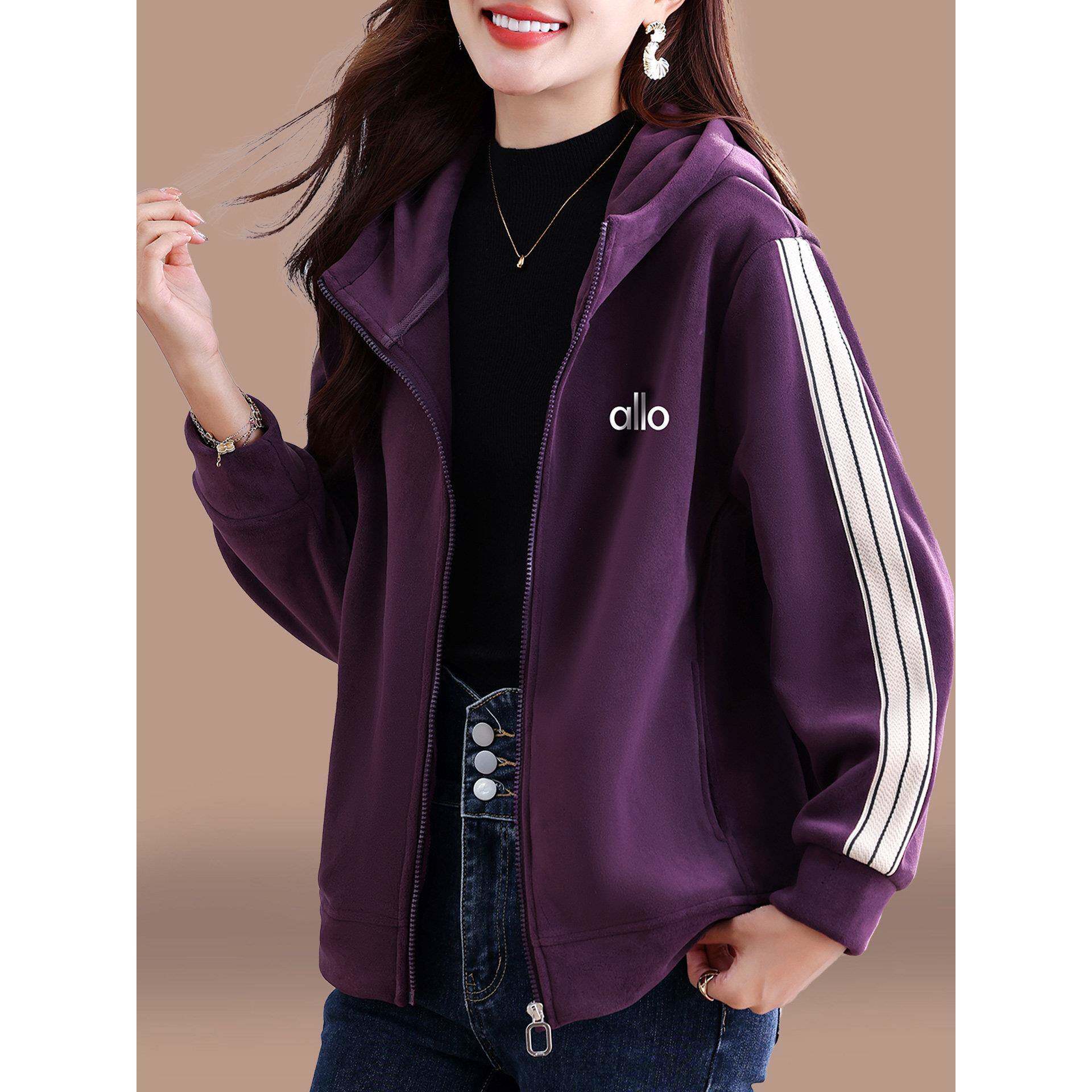 加绒卫衣外套女秋冬2025新款宽松百搭中年妈妈奥粒绒连帽拉炼上衣