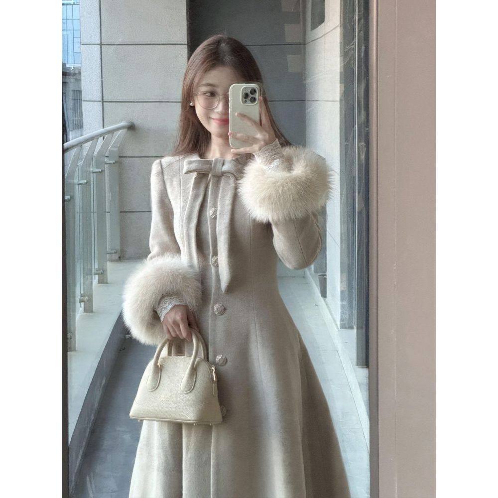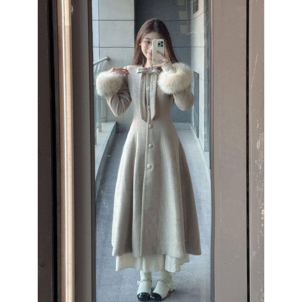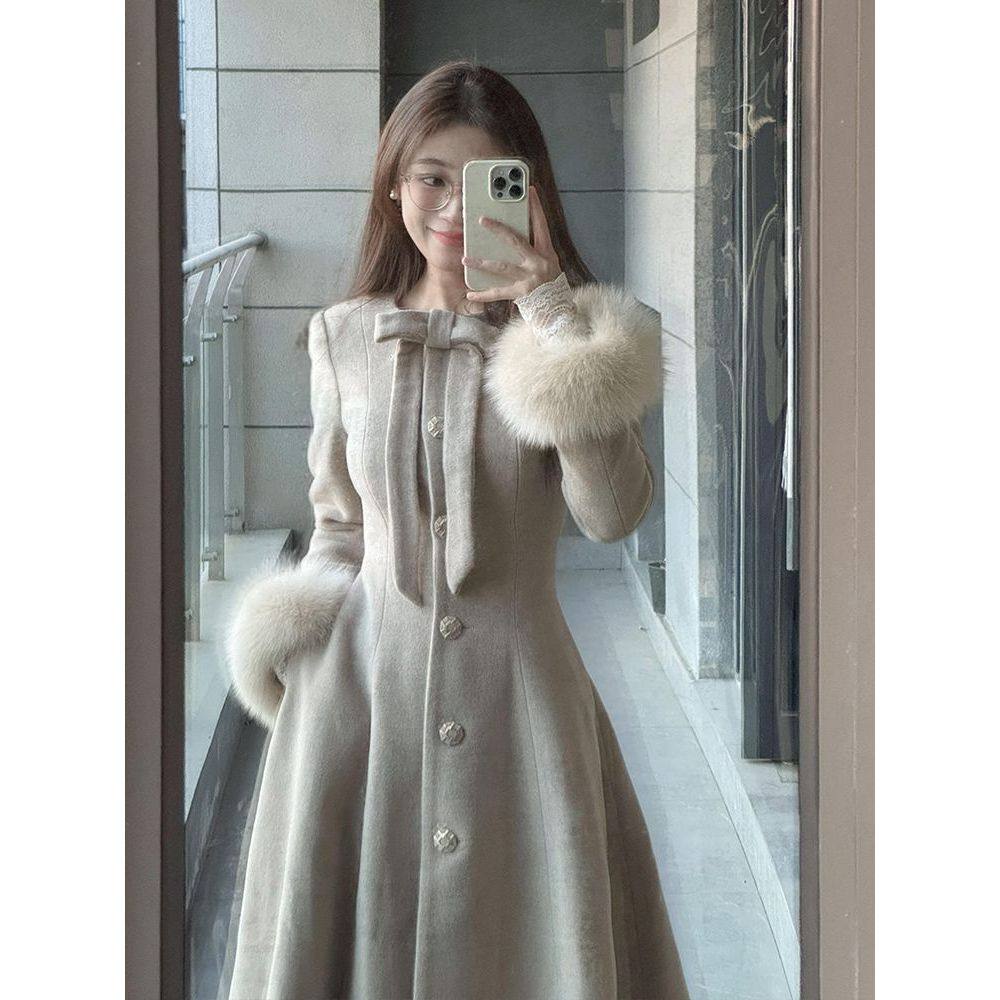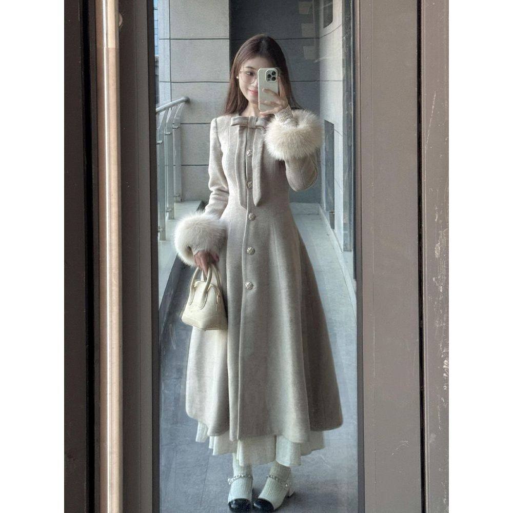【琳娜】法式复古气质收腰长袖冬装新款呢大衣外套百搭毛呢大衣女