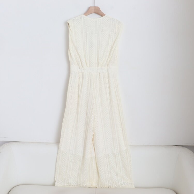 D18086日单新款1.1W客供V领松紧腰显瘦女气质蕾丝无袖连体阔腿裤