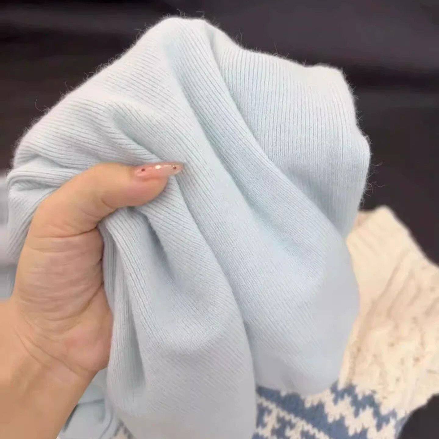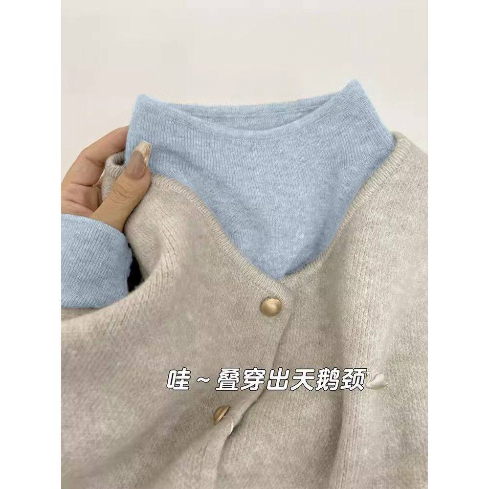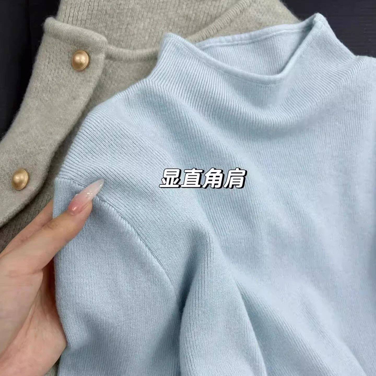 温柔miu系奶蓝色超显白内搭半高领毛衣女秋冬显瘦针织打底衫上衣