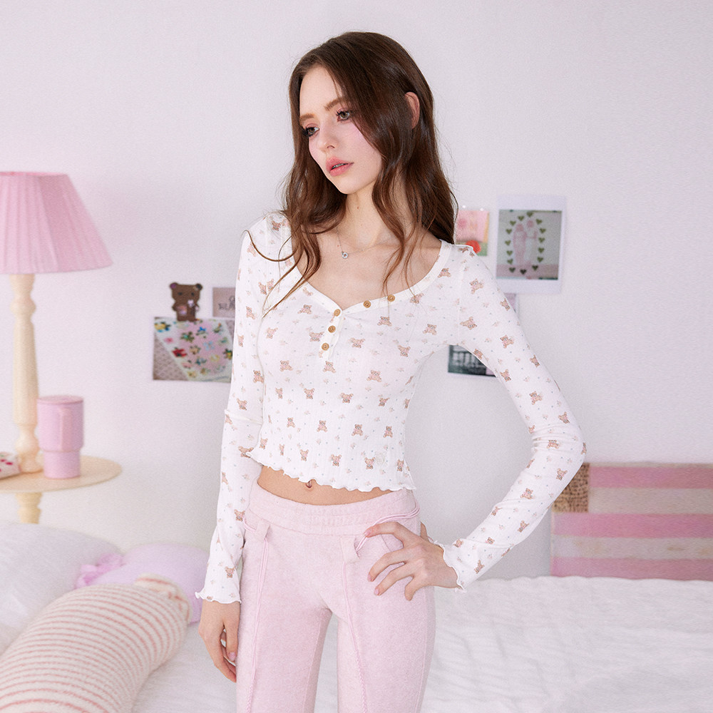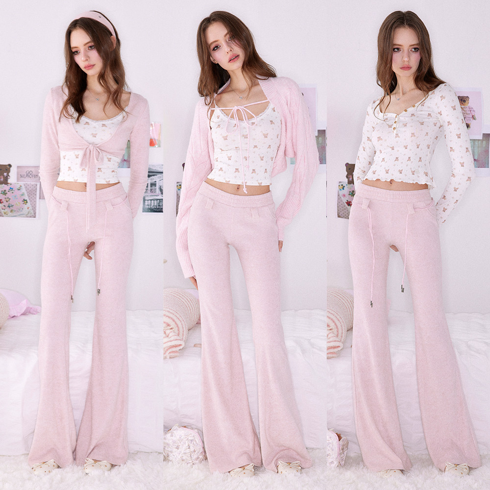 Mess Studio 辣妹针织坎肩吊带小熊亨利长袖T恤休闲微喇裤女套装