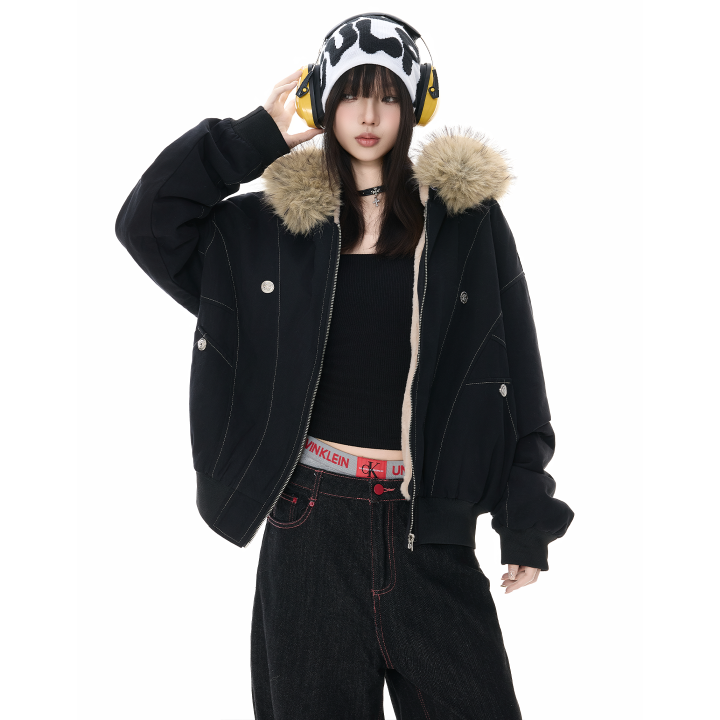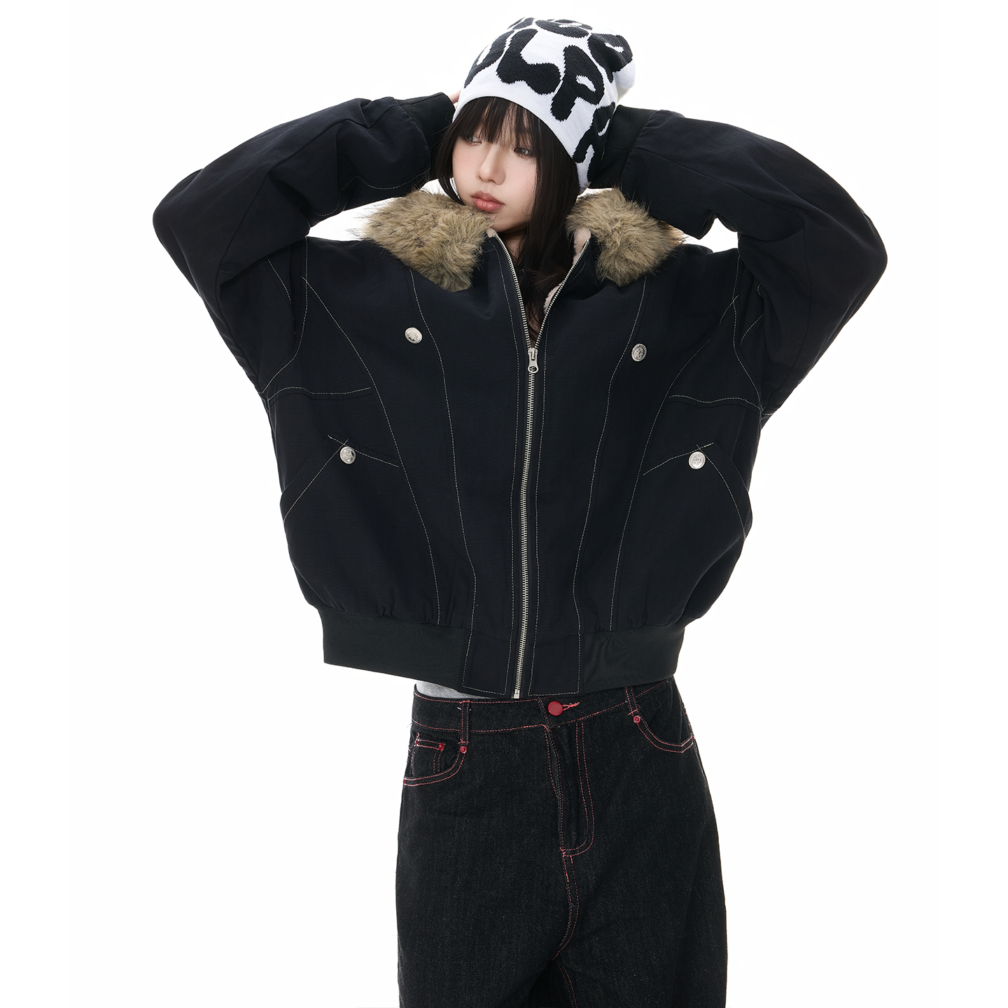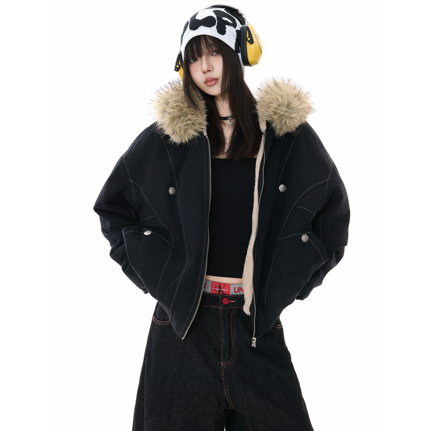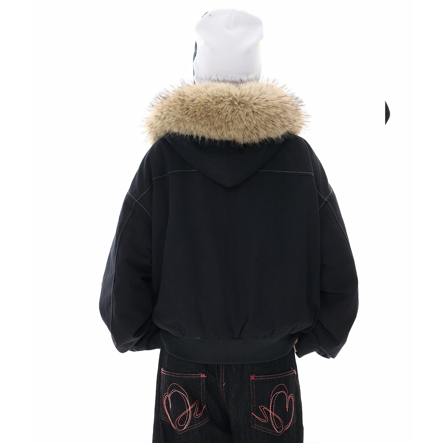 BRN美式复古座山雕毛领棉服男女冬季派克服宽松加厚保暖工装外套