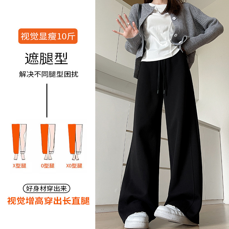 2025灰色运动裤秋冬季新款高腰直筒卫裤休闲加绒香蕉阔腿裤子