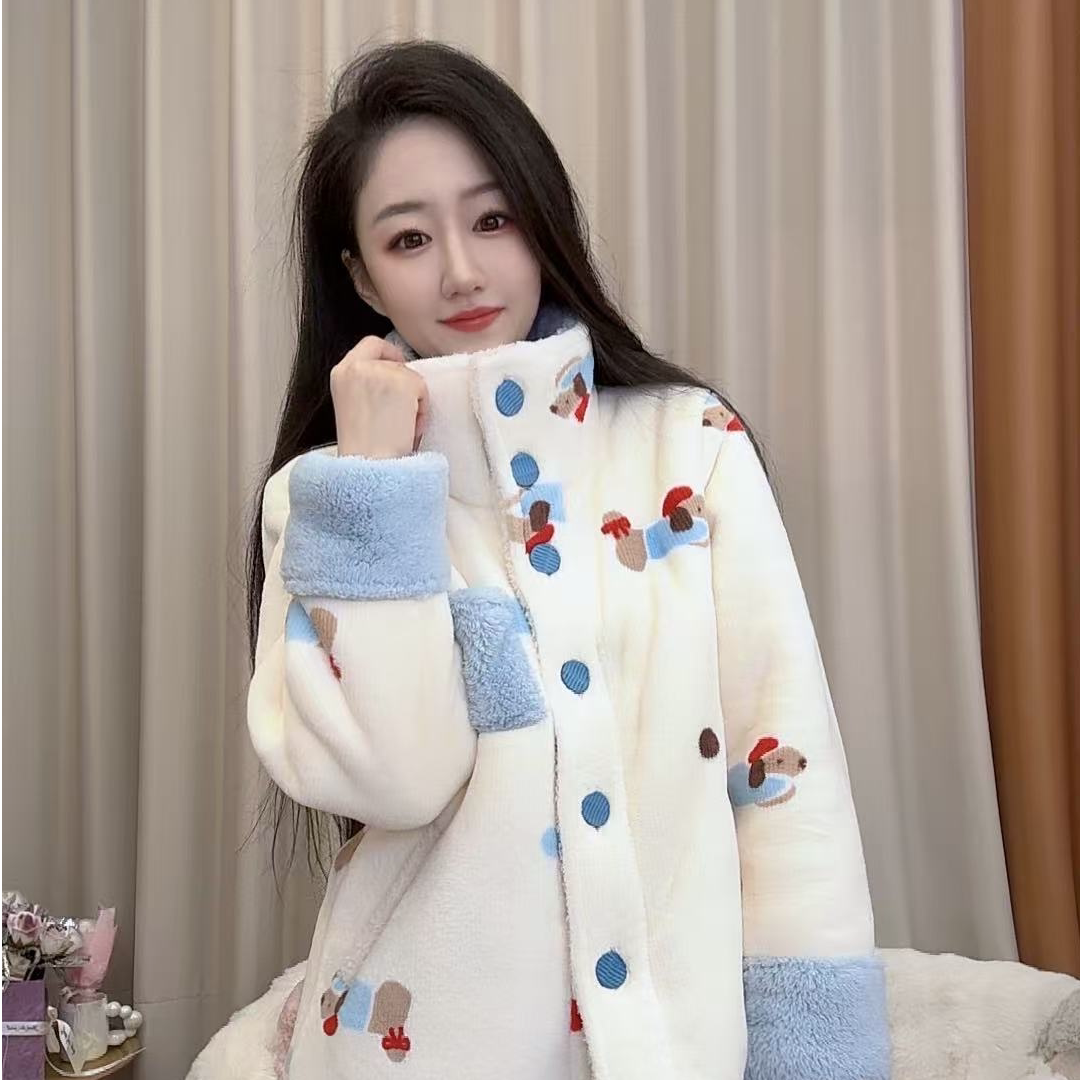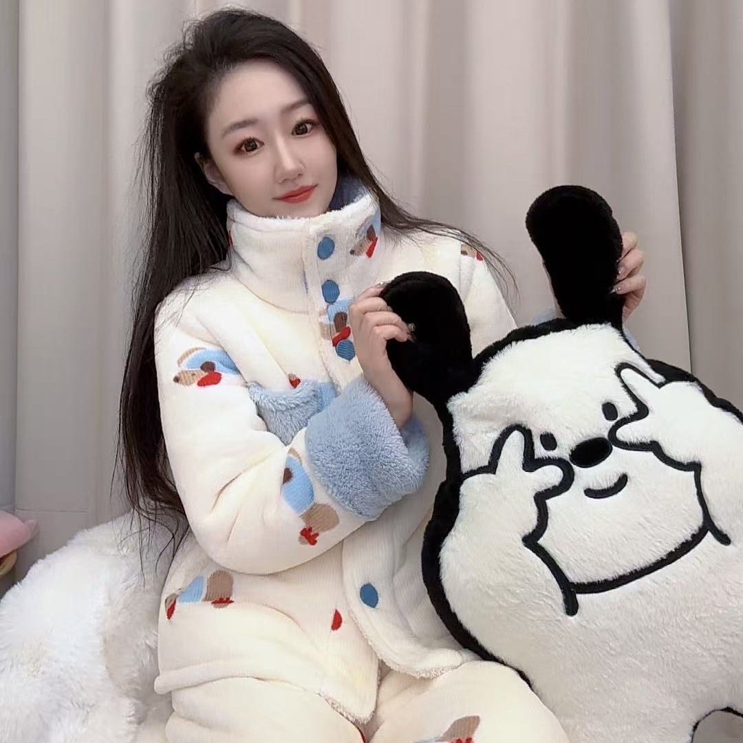 首页> 内衣> 珊瑚绒睡衣女2026冬季加绒加厚保暖可爱气质高领家居服套装可外穿