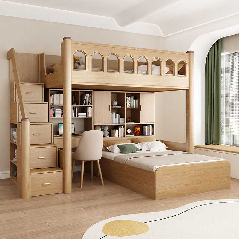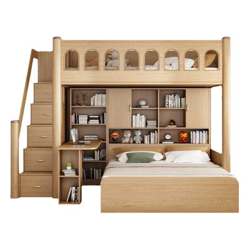 正品实木交错式上下床儿童书桌衣柜一体高低床小户型子母床上下铺