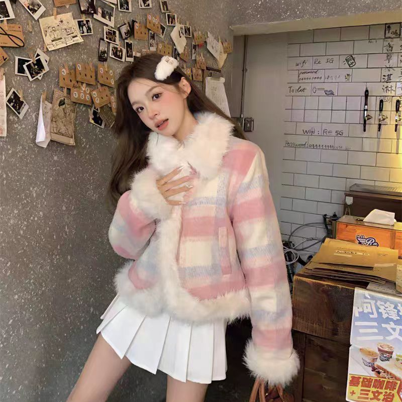 毛呢小香风外套女秋冬季新款小个子高级感气质加绒厚棉服短款棉衣