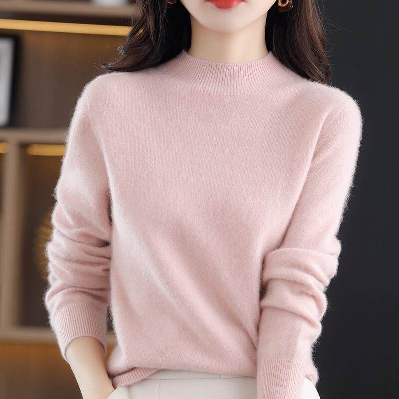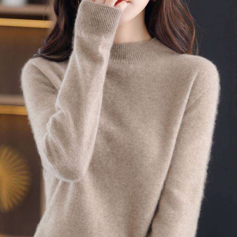 一线成衣无缝羊毛衫女100纯羊毛2024秋冬半高领宽松套头打底毛衣
