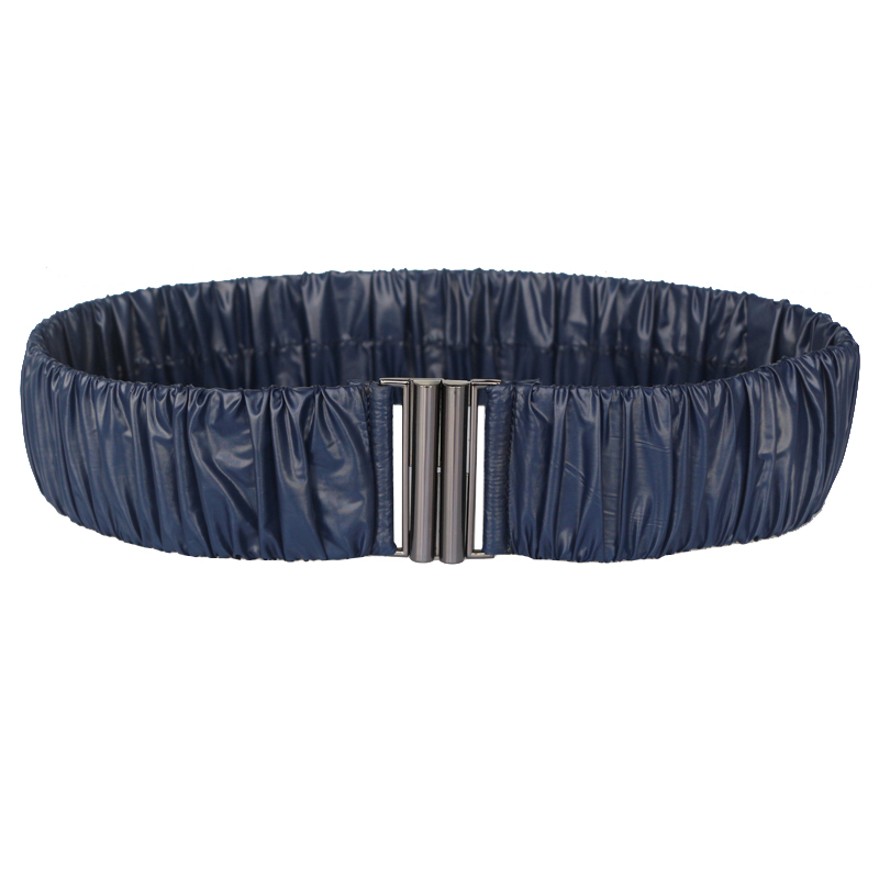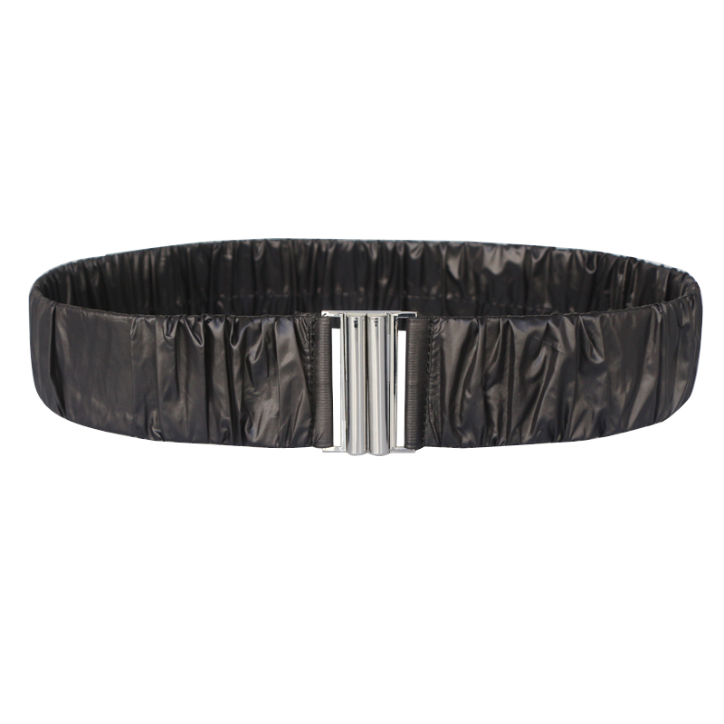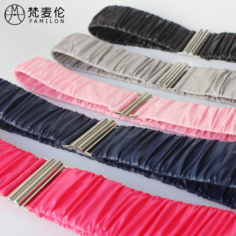 新款秋冬褶皱羽绒服面料松紧腰带女宽百搭亮面束腰弹力宽腰封包邮