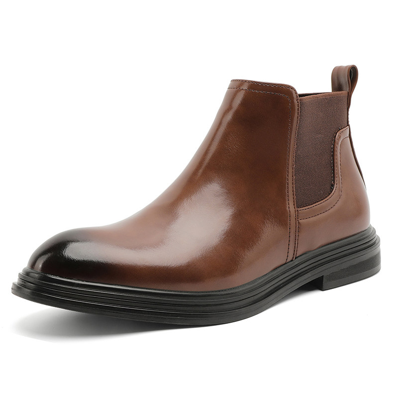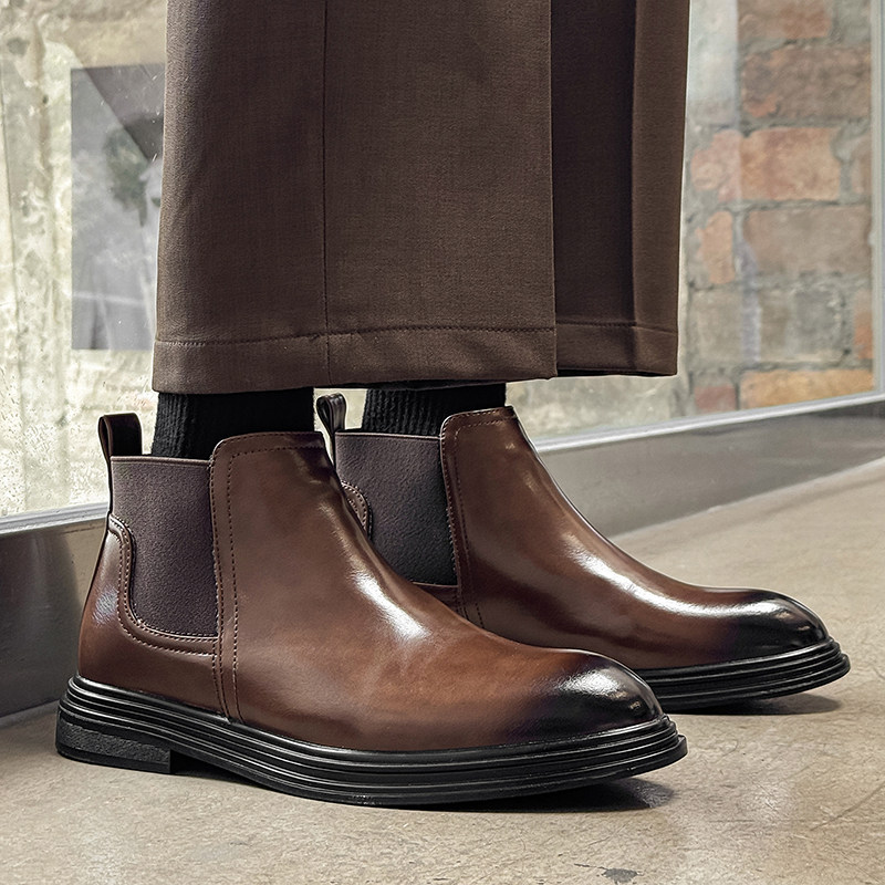 新款时尚潮流英伦男士尖头皮鞋中高帮加绒韩版短靴子潮夜店发型师