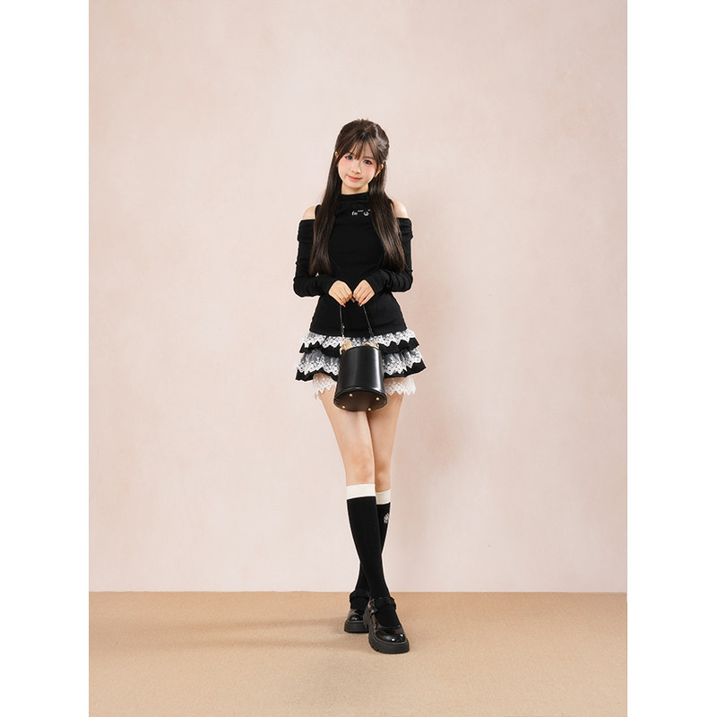 日系亚文化露肩长袖半身裙两件套小众修身显瘦百搭套装女秋季新款