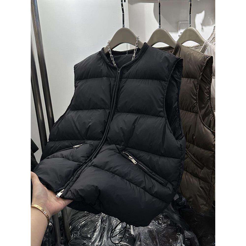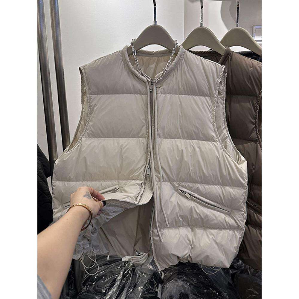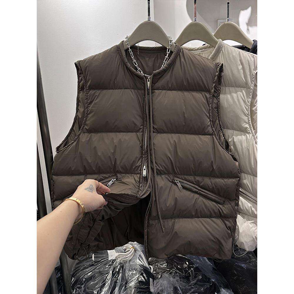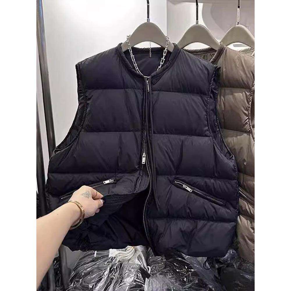 欧货秋冬大码女装新款时尚羽绒棉服马甲背心抽绳保暖坎肩马夹外套