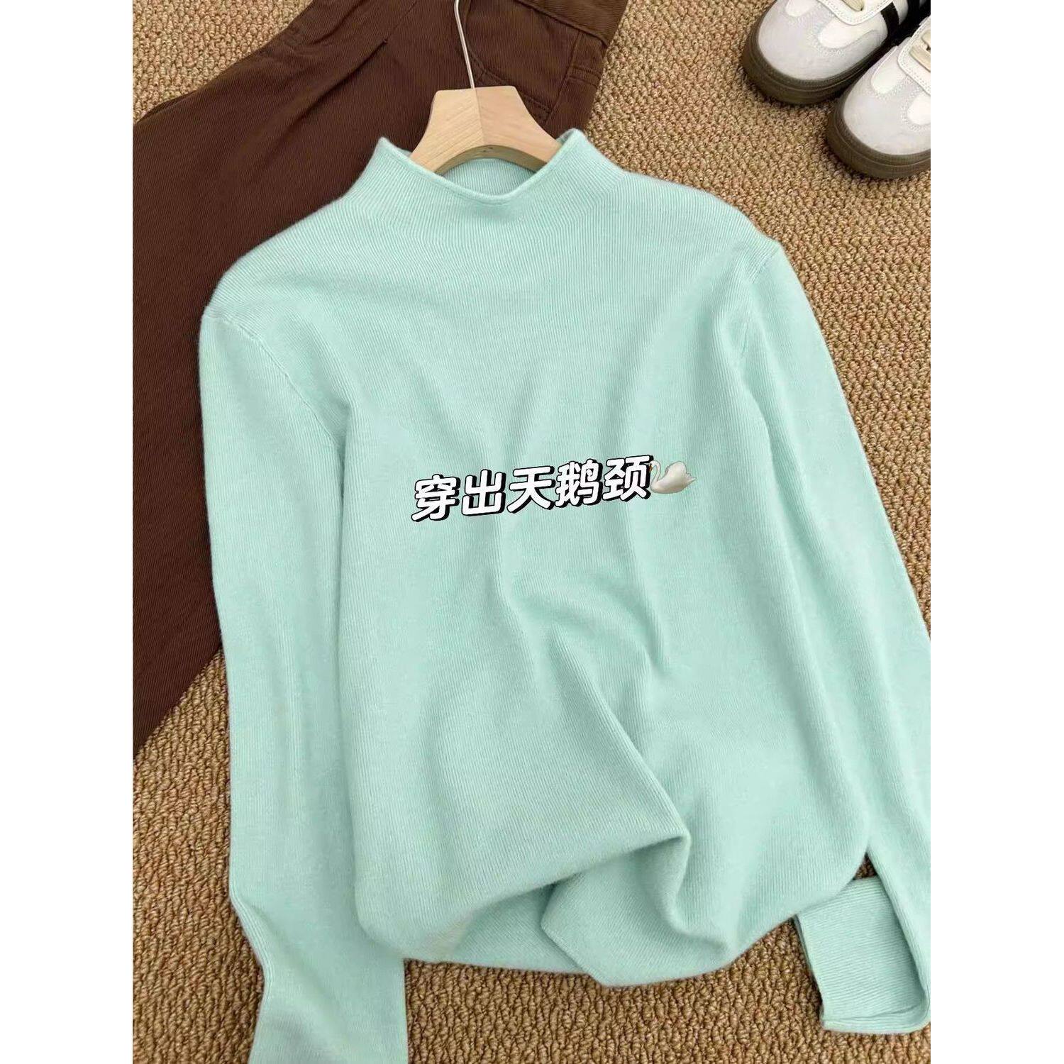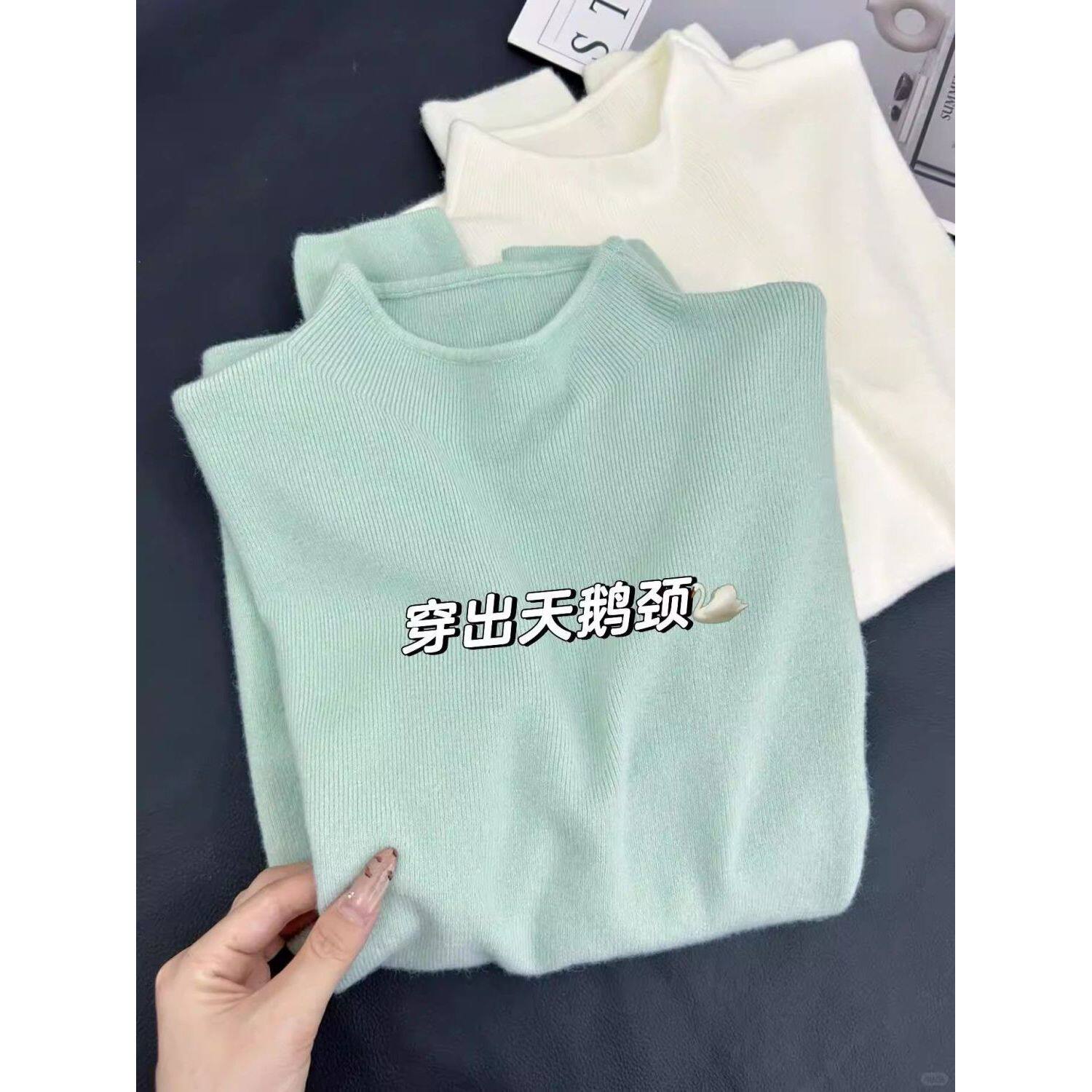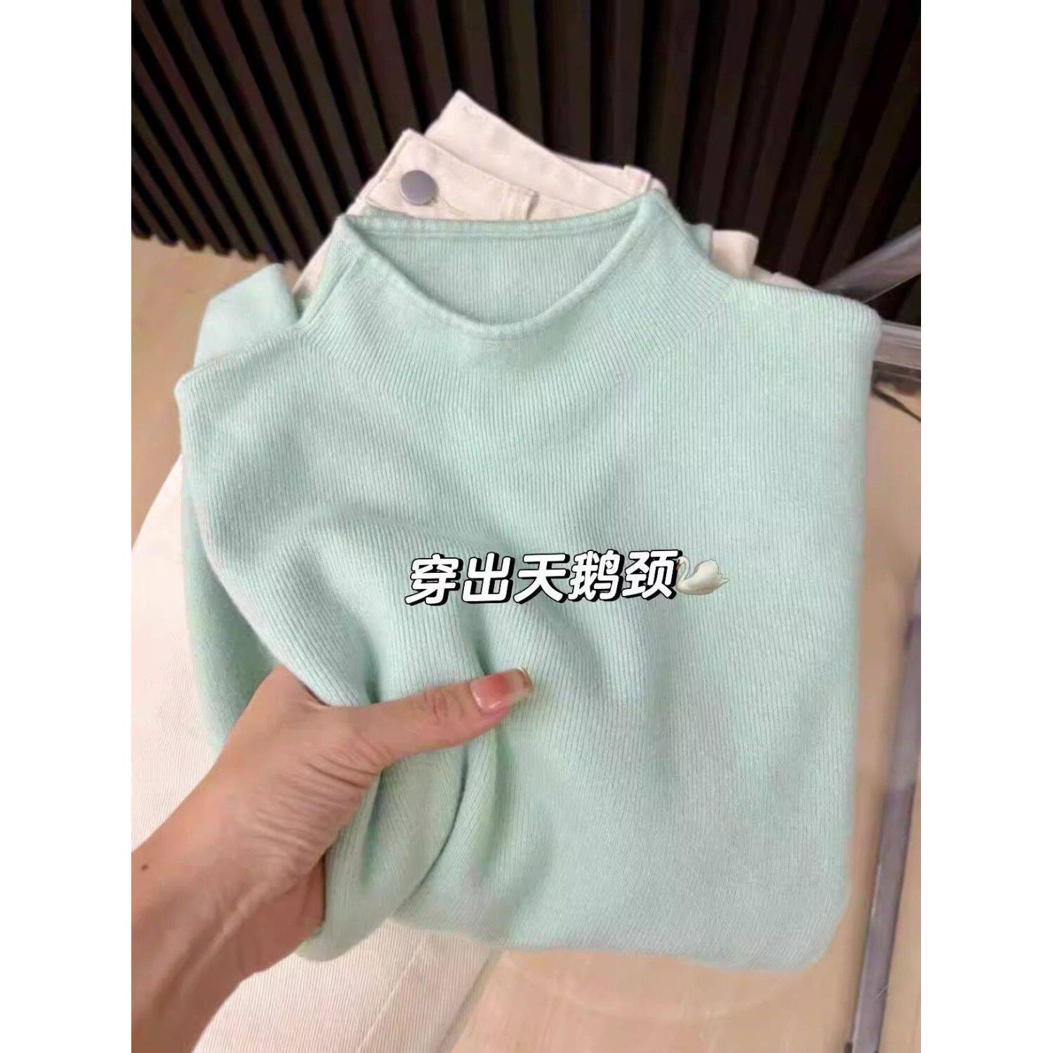 超显白浅绿色打底衫半高领保暖毛衣内搭可外穿秋冬绝美针织上衣女