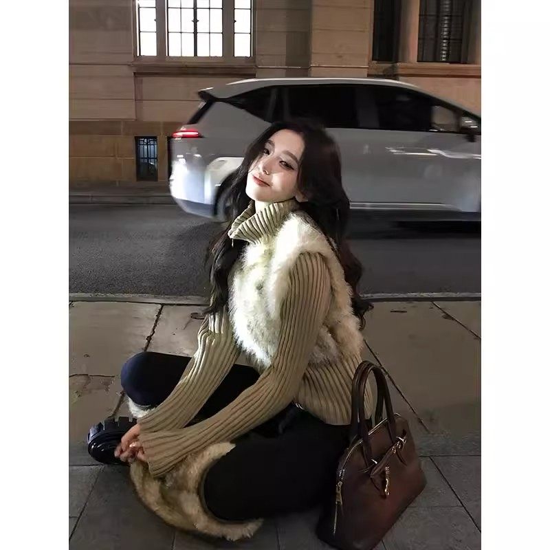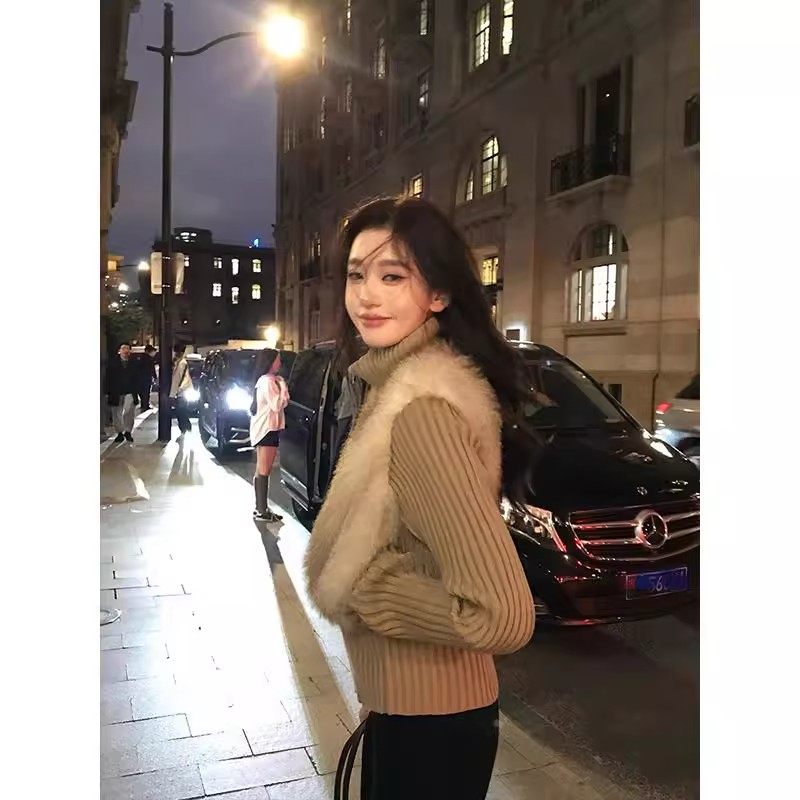网图美拉德毛毛拼接外套女秋冬假两件上衣