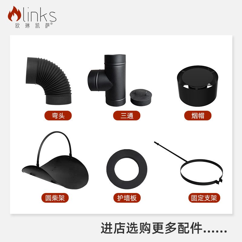 真火燃木壁炉烤火炉烟囱烟管烟帽弯头柴架安装配件304不锈钢黑色