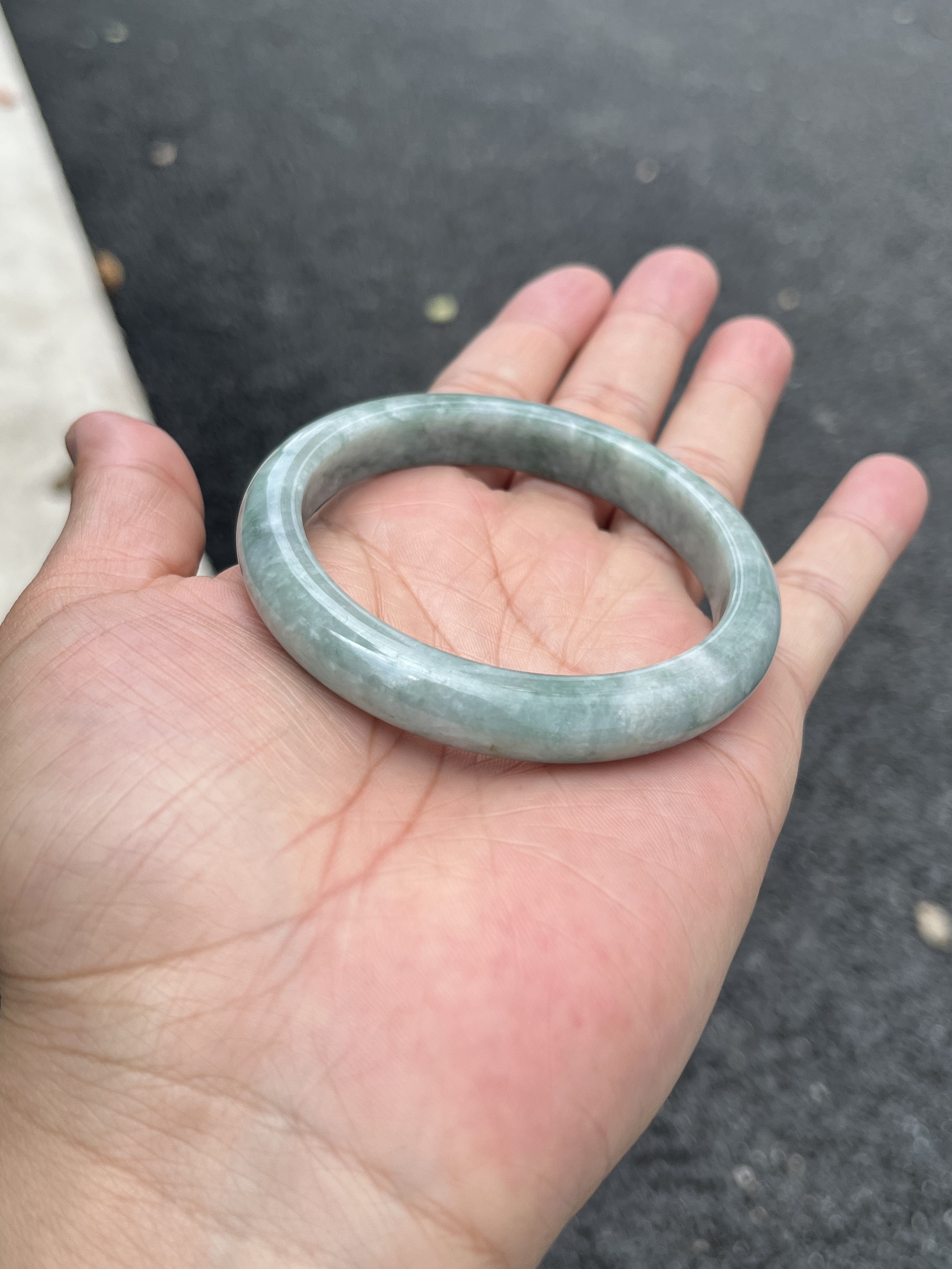 【特价】1119-0906天然A货翡翠手镯57圈蓝绿底满色洒金有纹
