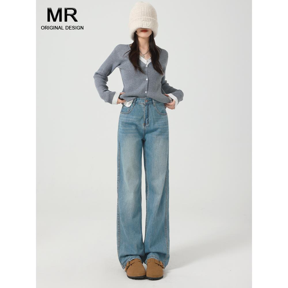 浅色阔腿天丝牛仔裤女2025秋季新款宽松阔腿窄版小个子直筒长裤子
