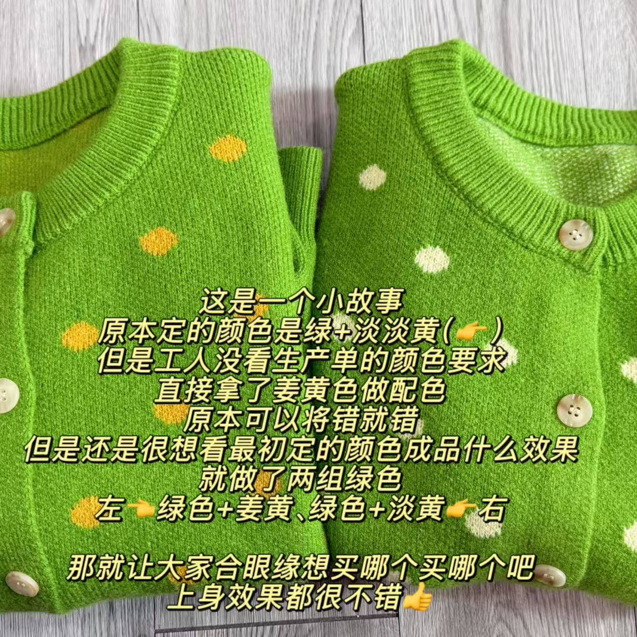 2328#【时光画布】波点长袖针织开衫毛衣外套